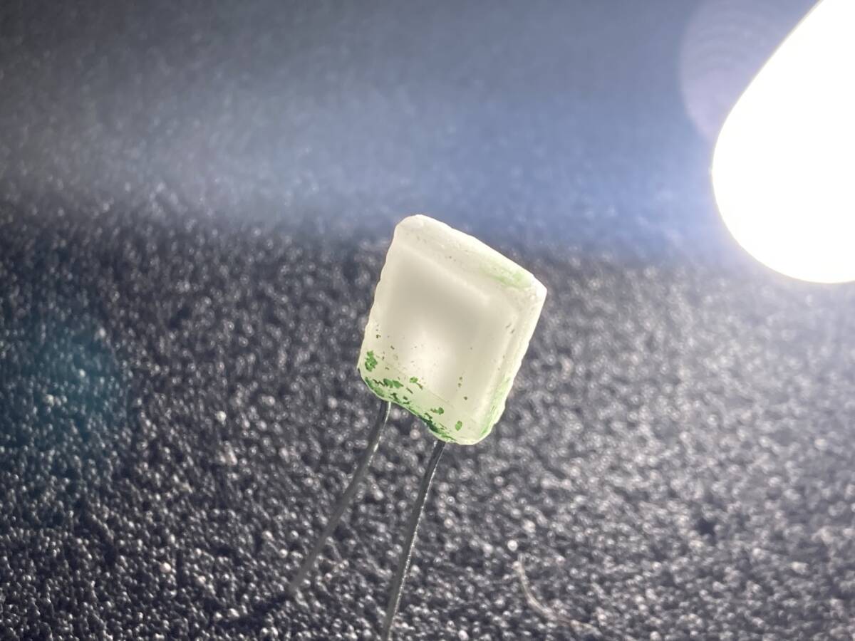 塗装を剥がしてみたところ、画像2枚目の通り透けて見えるガラスコンデンサと分かります。