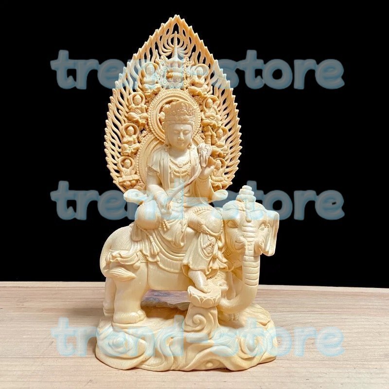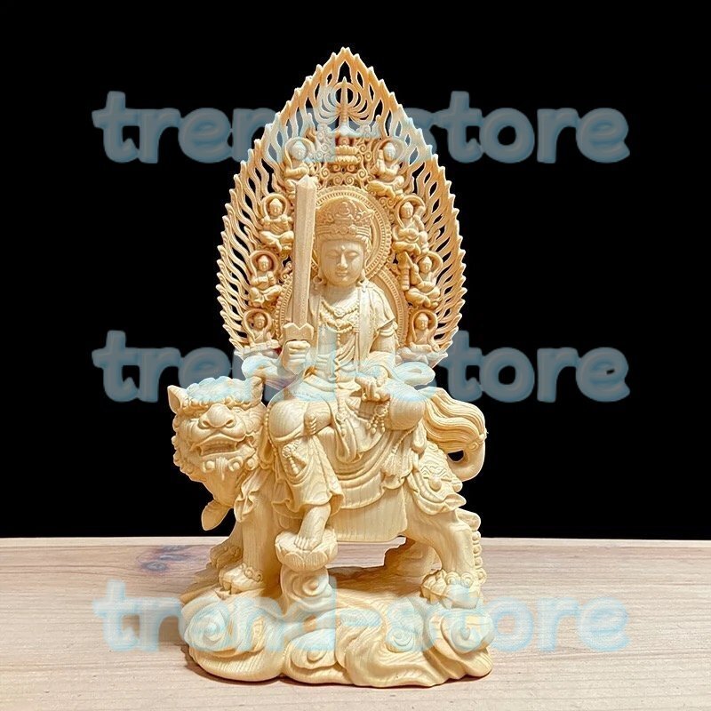 珍品 木彫仏像 文殊菩薩 普賢菩薩 座像 一式 彫刻 天然木檜材