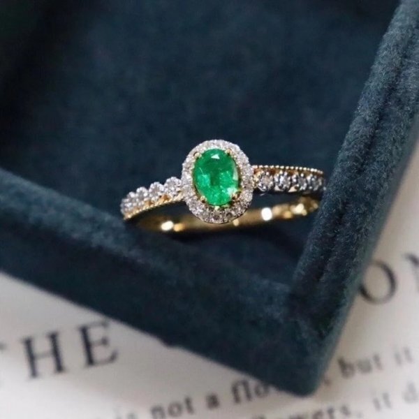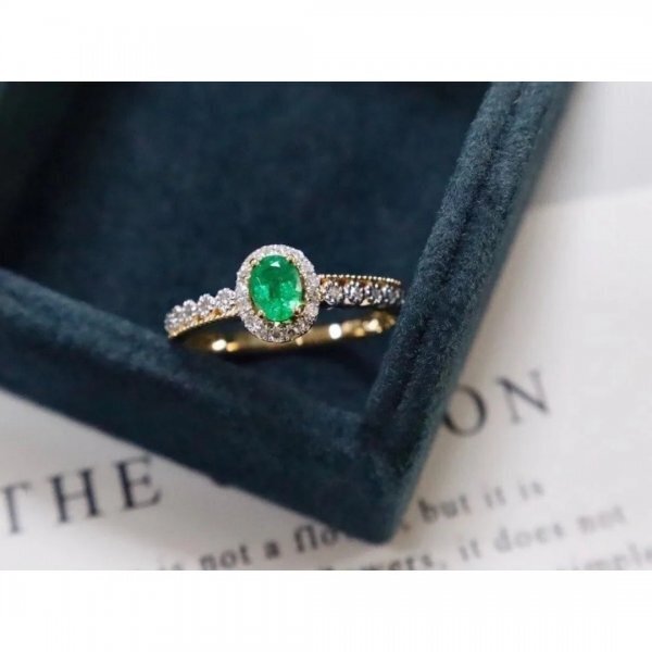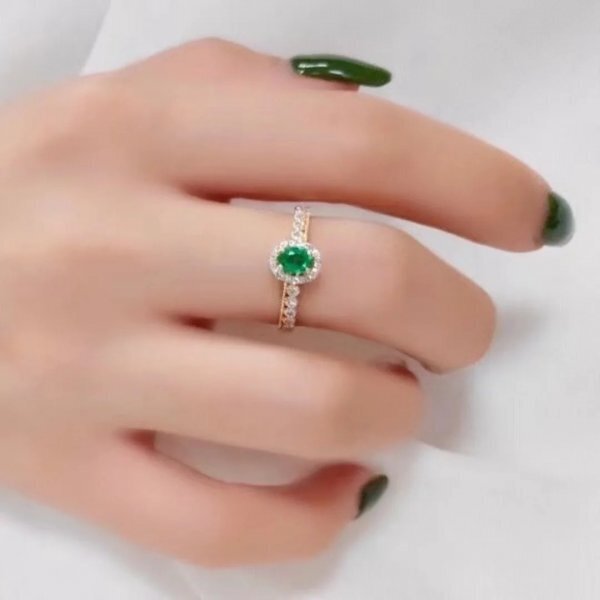 自然なコロンビアのエメラルドリング、925シルバー、3x4mm、証明書