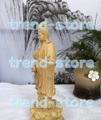 極上彫 勢至菩薩仏像 勢至菩薩立像 仏教工芸品 総柘植材 仏像 木彫 勢至菩薩