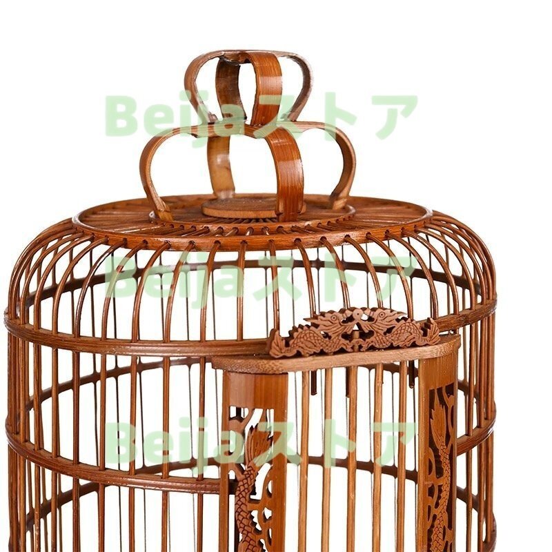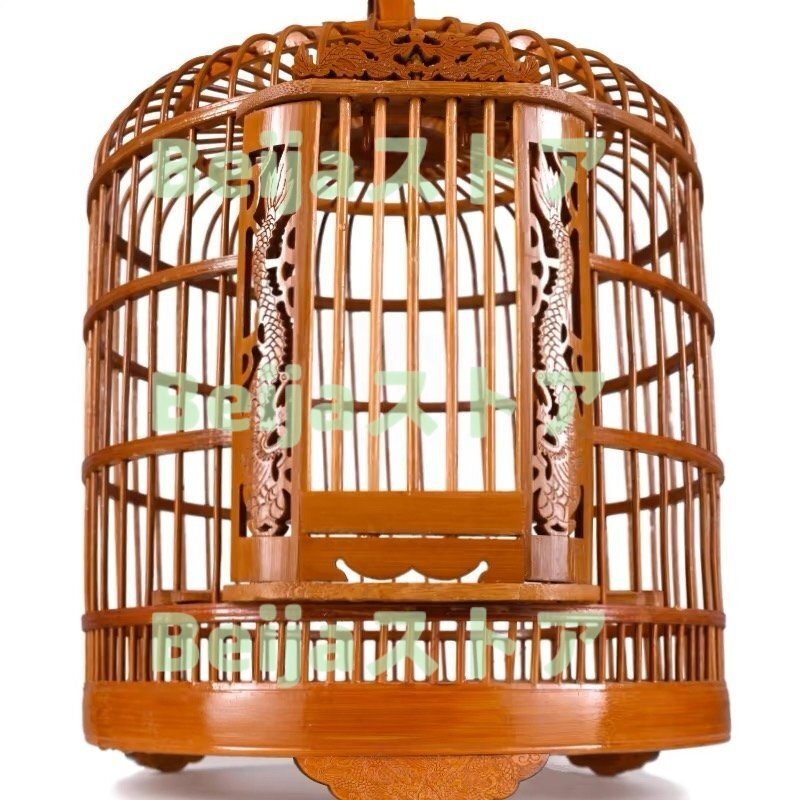 変形しにくいの老南竹で制作され 、宮庭式伝統工芸品、ドアの周りと底盤周り細かい彫刻 、手作り竹丸鳥籠。