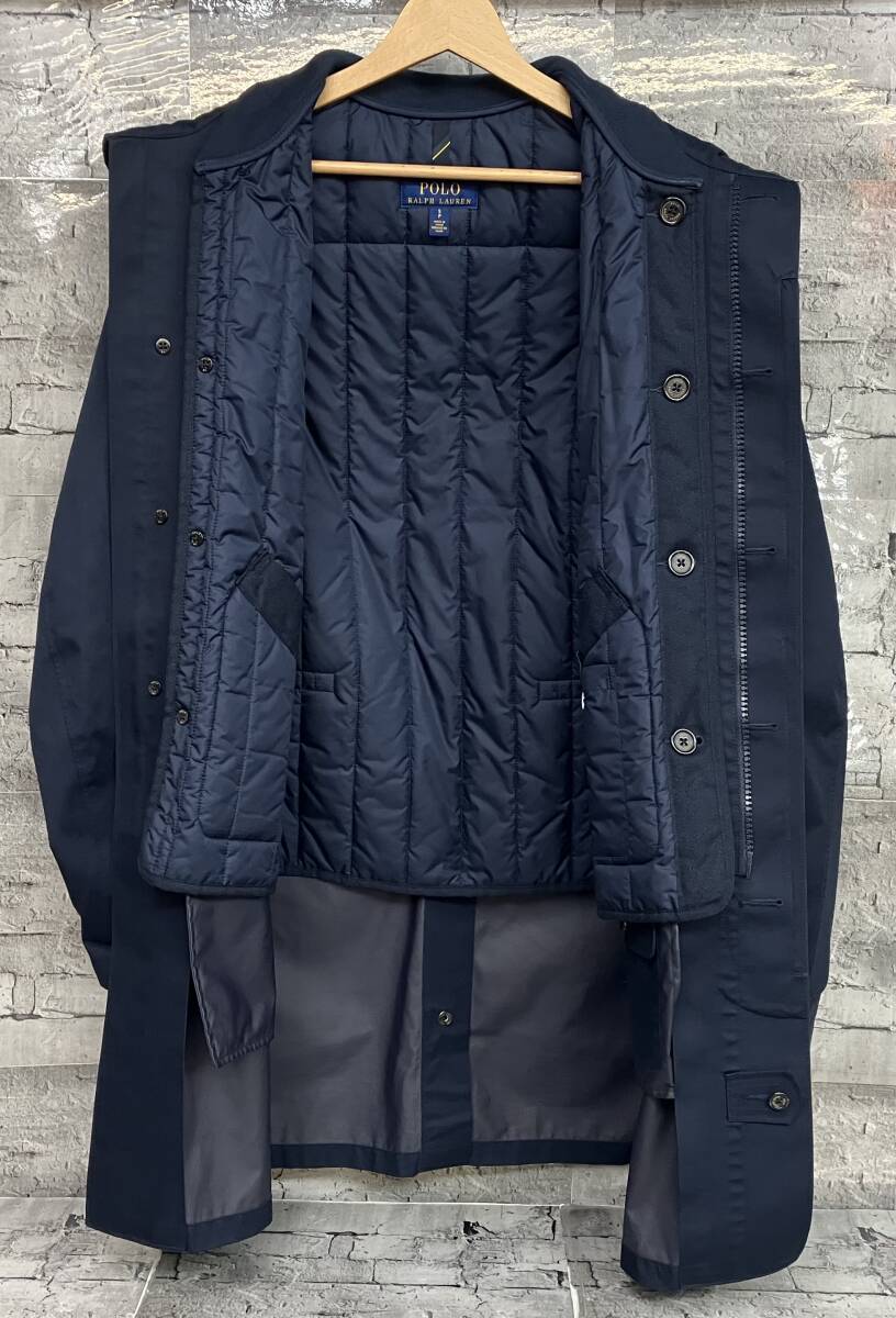 POLO RALPH LAUREN ポロラルフローレン ライナー付き ステンカラーコート 中綿ライナー サイズSP ネイビー サイズ(単位:センチメートル) 着丈:約90 袖丈:約64 身幅:約52 肩幅:約45 |
