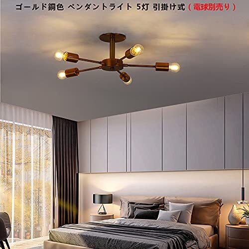 「Herischen ペンダントライト ゴールド銅色 北欧風 アンティーク レトロスタイル 天井照明 照明器具 引掛け式 工事不要 リビング キッ」▼345932244727▼(商品説明)工?・銅色5灯 ・・Color:銅色5灯・【ゴールド銅色の本体】ペンダントライト5灯は高品質の金属で作られている、高級なゴールド銅色、お値段以上の幸福感をきっともたらしてくれます。サイズ:約50×50×15cm「定格電圧」85-250V「重量」約1.3kg。電球対応:E26(電球は付属しません)日本説明書付き。・【広い光が感じ】壁を照らしたり、直下を照らしたり、光を散らばせることにより陰影が生まれ、オシャレな空間を演出することができるのです。明るい光線は清潔感のある印象で、お部屋のテイストを選ばずお使いになれます。北欧系などのモダンなインテリアにもピッタリです。リビング 照明 おしゃれだけでなく、ダイニングや寝室にも良いですね。・【工業風】ペンダントライト5灯は外観と内側もゴールド銅色で、室内にアンティークな雰囲気を醸し出します。照明としてだけではなくお部屋のインテリアとしても活躍しそうです。天井照明をオシャレなデザイン照明に変えるだけで、お部屋の雰囲気はグッと変わります。さらにスタンドライトなどの補助照明を足すことで「多灯照明」に!一つペンダントライトだけで十分です【ゴールド銅色の本体】ペンダントライト5灯は高品質の金属で作られている、高級なゴールド銅色、お値段以上の幸福感をきっともたらしてくれます。サイズ:約50×50×15cm「定格電圧」85-250V「重量」約1.3kg。電球対応:E26(電球は付属しません)日本説明書付き。 【広い光が感じ】壁を照らしたり、直下を照らしたり、光を散らばせることにより陰影が生まれ、オシャレな空間を演出することができるのです。明るい光線は清潔感のある印象で、お部屋のテイストを選ばずお使いになれます。北欧系などのモダンなインテリアにもピッタリです。リビング 照明 おしゃれだけでなく、ダイニングや寝室にも良いですね。 【工業風】ペンダントライト5灯は外観と内側もゴールド銅色で、室内にアンティークな雰囲気を醸し出します。照明としてだけではなくお部屋のインテリアとしても活躍しそうです。天井照明をオシャレなデザイン照明に変えるだけで、お部屋の雰囲気はグッと変わります。さらにスタンドライトなどの補助照明を足すことで「多灯照明」に!一つペンダントライトだけで十分です。 【幅広い範囲に適用】ペンダントライト5灯はお部屋に観賞性や高級感を添えます。リビング・ダイニング・カフェ・店舗・ホテルの部屋・喫茶店など様々な場所にふさわしくて、いい雰囲気を演出します。 【簡単な取り付け】引掛けシーリング式なので、工事不要で素人にも取り付けられます。★★★ご注意:感電の恐れがありますので、取付・取り外す前に必ず部屋の主電源のブレーキを下がってください!!!※LED電球、白熱電球、電球型蛍光灯使用可。ご注意:傾斜のある天井、傾斜を合わせた舟底天井、凹凸のある天井ではご使用いただけません。必ず平らな天井に取り付けて下さい。