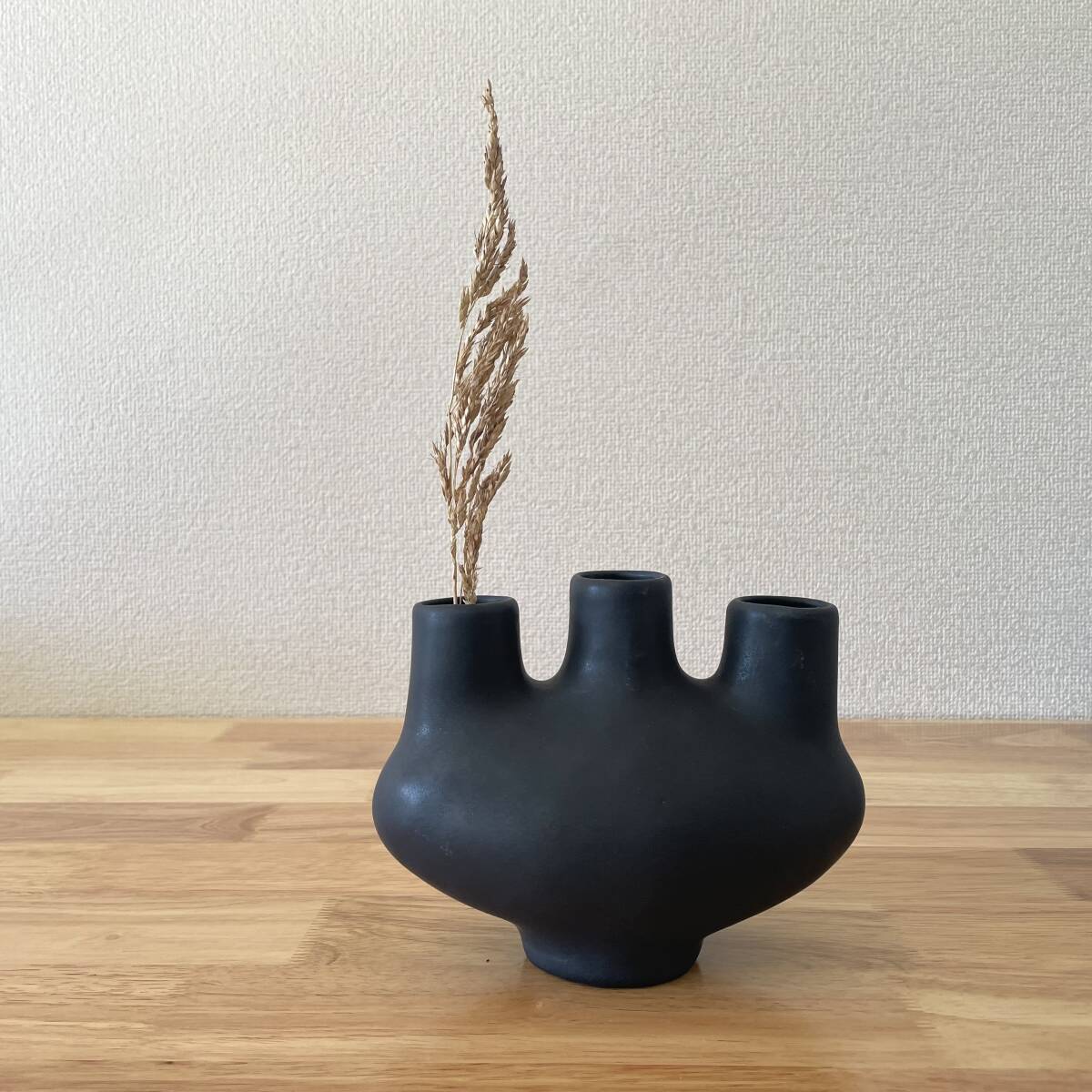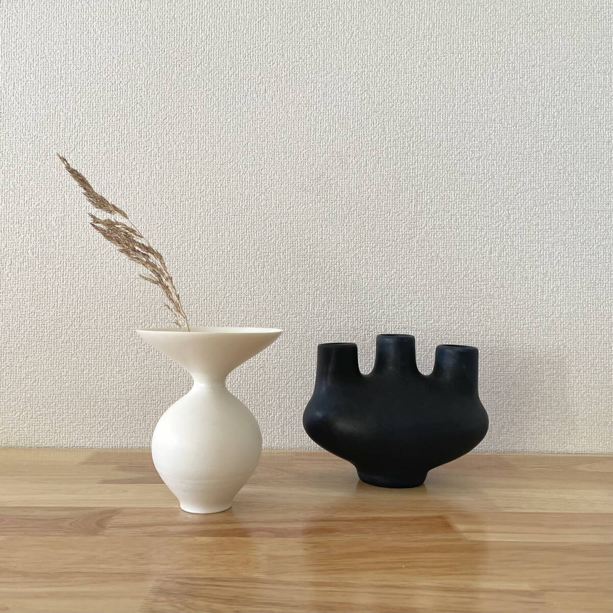 轆轤を使わず、一点ごとに手捻りで造られたプリミティブながらもモダンな印象の花器です。