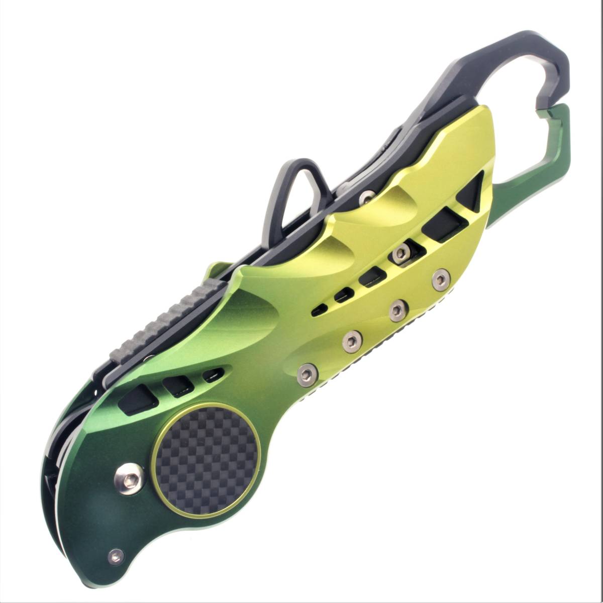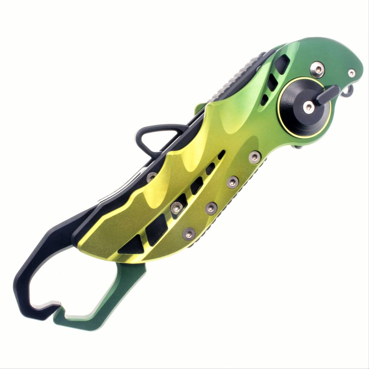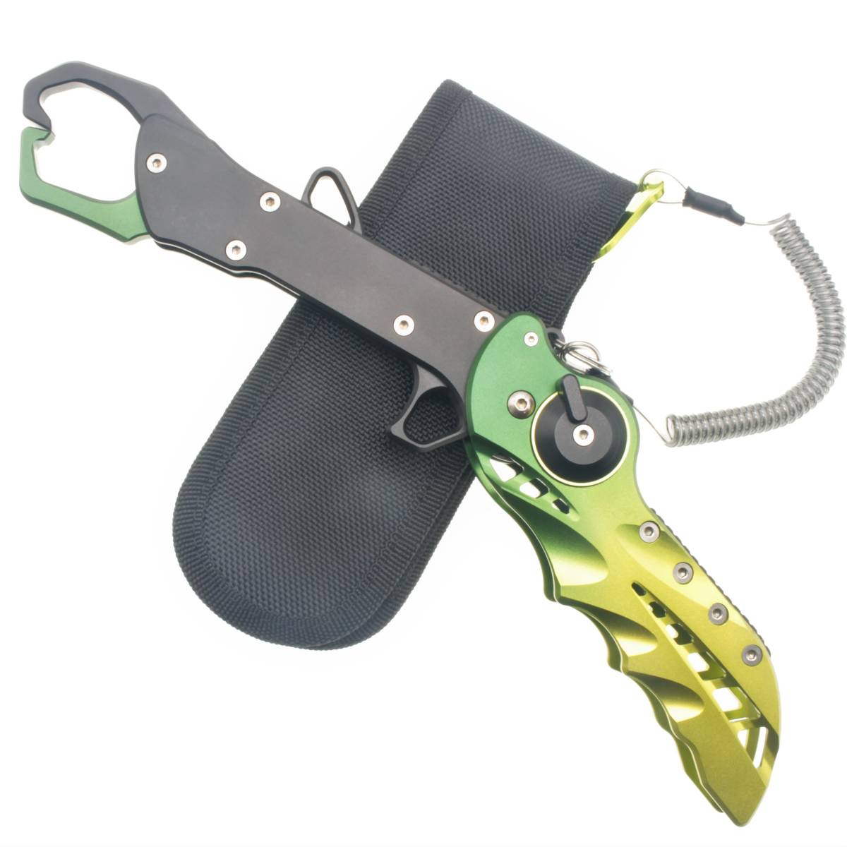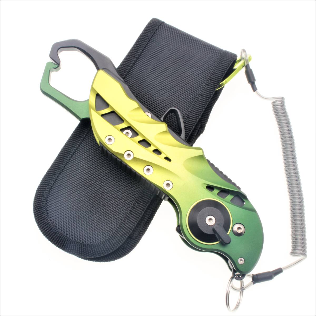 【送料無料】2023最新型 軽量アルミ製 折り畳み式 フォールディング フィッシュグリップ フィッシュキャッチャー 魚掴み ブラックグリーン