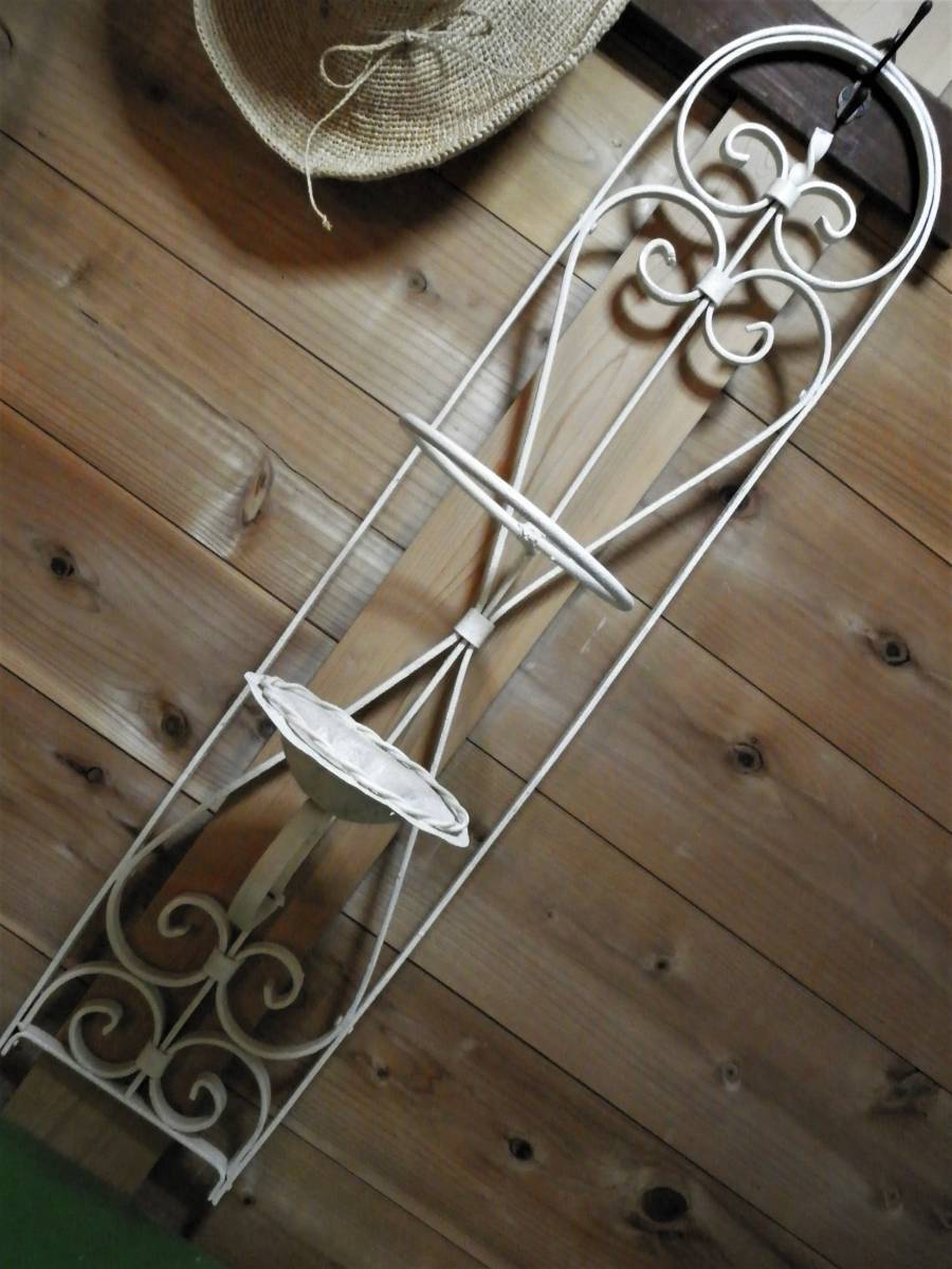 レア/フランス/アンティーク/ブロカント/アイアン/キャンドルホルダー/ガーデン/パリ/鉄/ゆらゆらガラス/気泡/アイボリー/白/店舗/什器