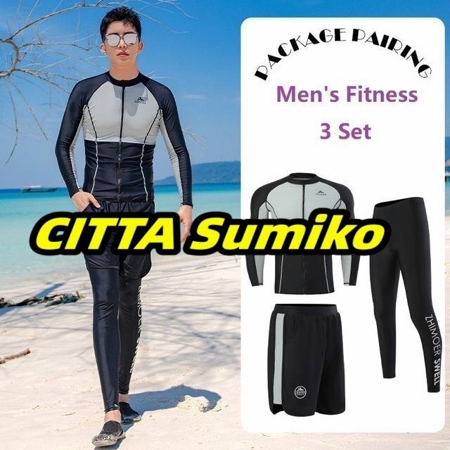 3点セット フィットネス サーフィン 長袖 水着 フィットネス水着 日焼け防止 競泳水着 ラッシュガード レギンス スイムウェア サイズ2XL