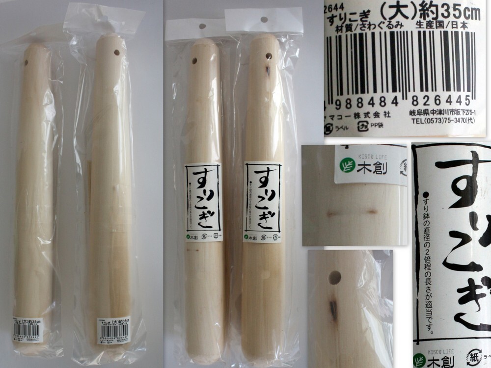 1106/未使用品・長期保管品/木創 材質:サワグルミ すりこぎ(大) 約35cm 2本セット