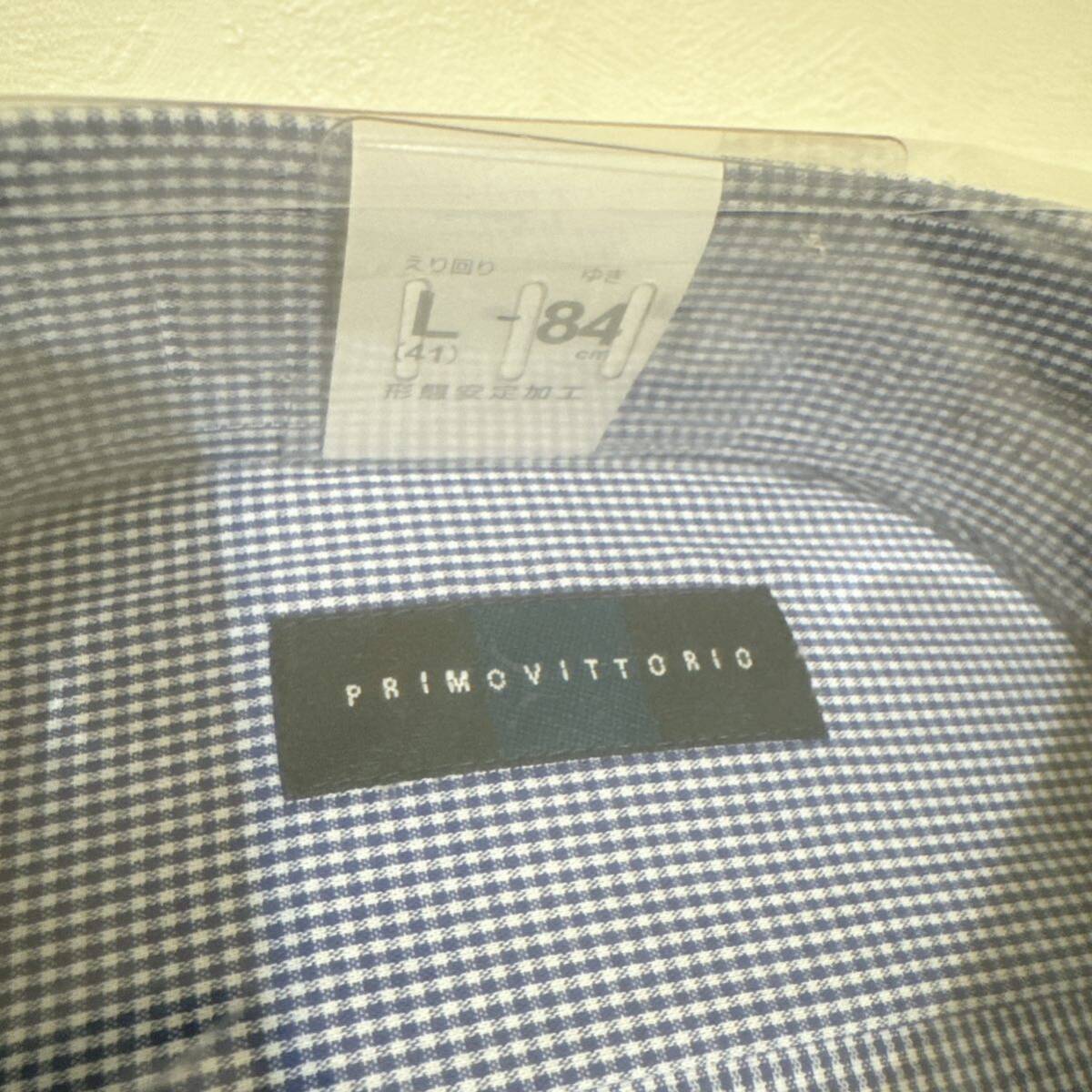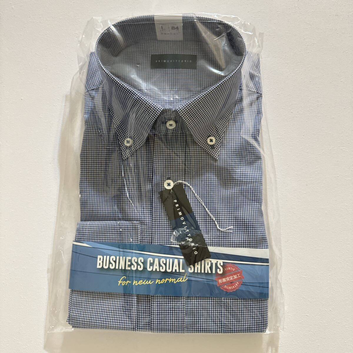 ★ 未使用 Lサイズ 41-84 形態安定加工 ブルー ボタンダウン チェック ドレスシャツ Y ワイ シャツ ★ 全国一律送料 断捨離放出 ★