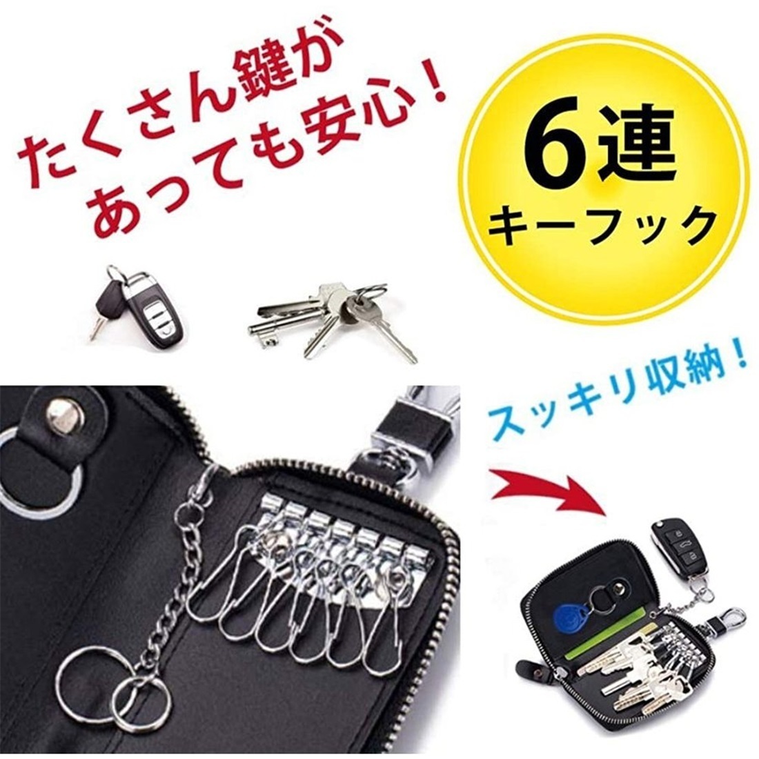 カラビナフック:キーホルダーのようにバッグやベルトにつけることができ。着脱可能キーリング:常に携帯していたい大切な鍵、門限カードなどを収納可能。キーホルダー:車の鍵、家の鍵なども一緒に収納できます。 カードポケット:常に携帯していたい紙幣の小銭、電車の定期券、ICカード、名刺などを収納可能。6連キーフック:車やバイク、自宅などの様々なカギに幅広く対応。