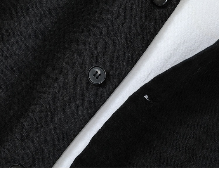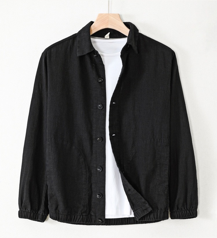 メンズファション 苧麻 長袖シャツ ブラウス ワークシャツ ブラック XLサイズ