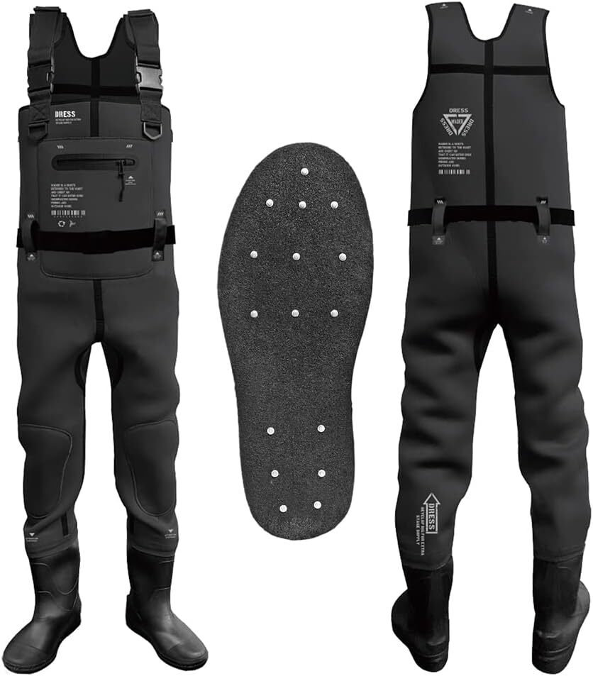 DRESS☆クロロプレン チェストハイウェーダー+ 胴付長靴 (ブラック)M