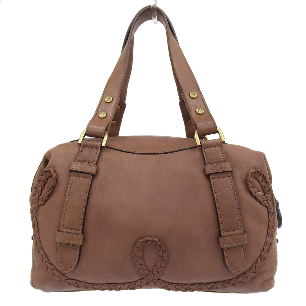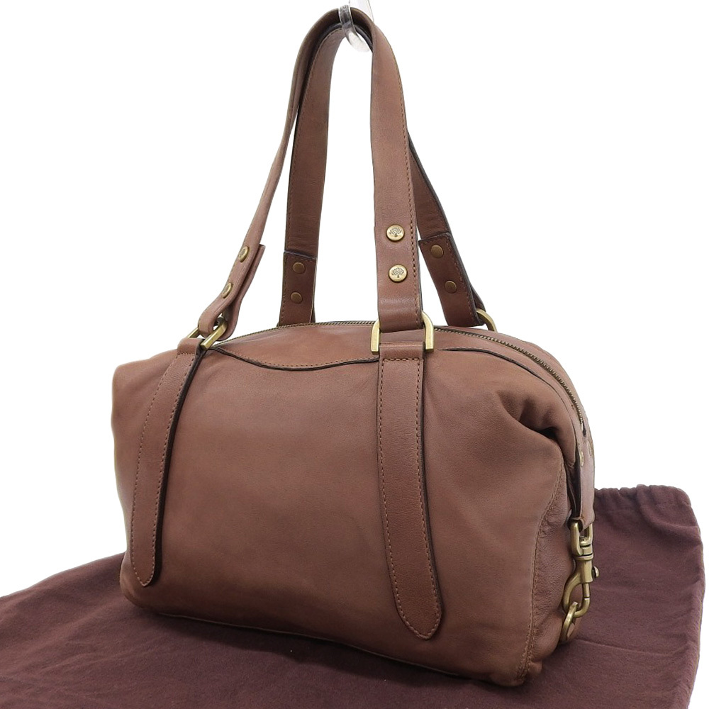 | 美品 マルベリー メタルタグ ラム レザー 2way ショルダー トート ボストン ハンド バッグ ブラウン ロープ装飾 レディース オフィス 旅 |