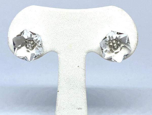 【即決】 K18WG 水晶 スタッドピアス クオーツ 1.5×1.35㎝ ピアス 無色 星 ホワイトゴールド キャッチ付き 4.4g