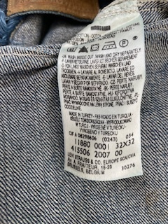 製品内側表記   ウエストサイズ32インチ  レングスサイズ32インチ