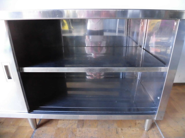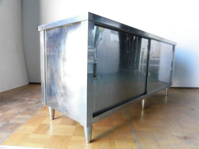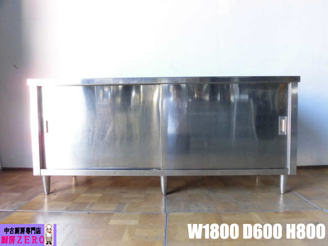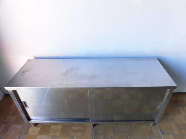 中古厨房 業務用 食器庫 食器棚 収納棚 スライド扉 ステンレス W1800×D600×H800mm 店舗 戸棚 飲食店 調理場