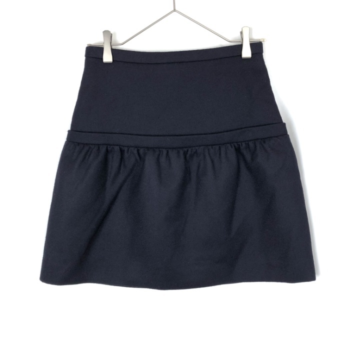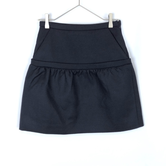【コメント】 シルエットが可愛い台形ミニスカートです。ギャザーがポイントの素敵なデザイン。ファスナーが少し硬いです。毛羽立ちがありますが気になる汚れはなく、全体的に綺麗なお品物です。 |