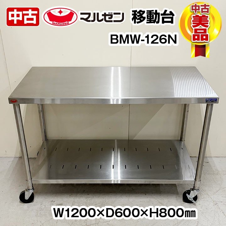 マルゼン 移動台 BMW-126N 幅1200×奥行600×高さ800mm スノコ付き キャスター付き 中古 厨房機器 板金