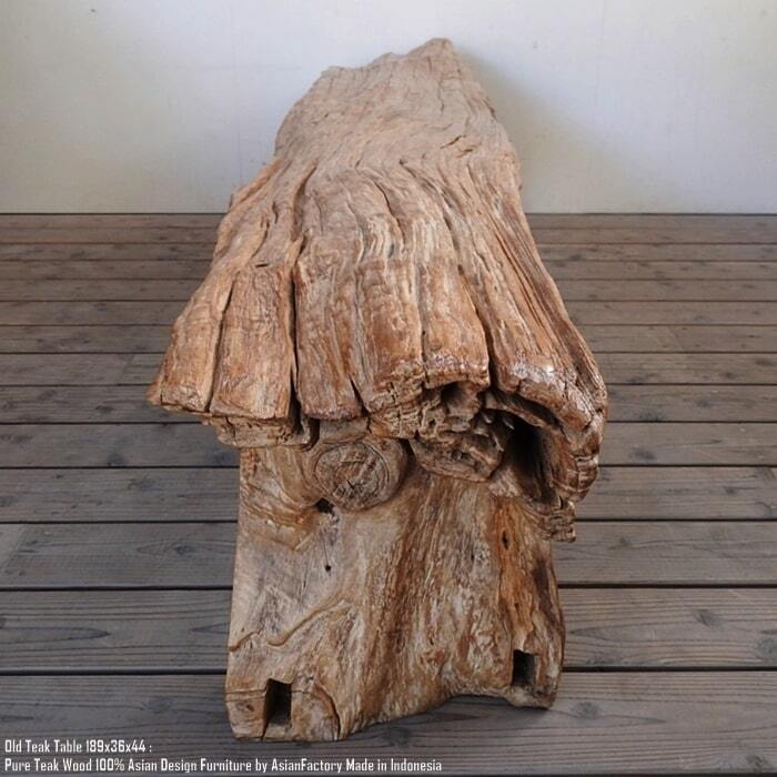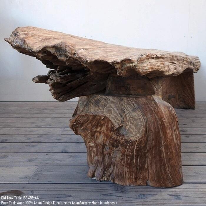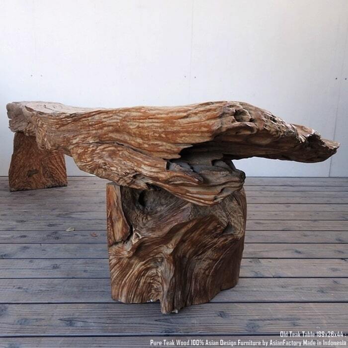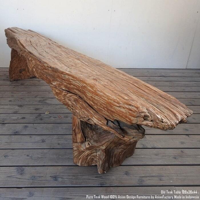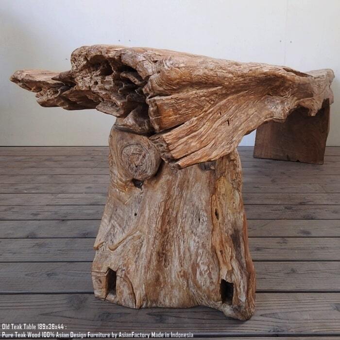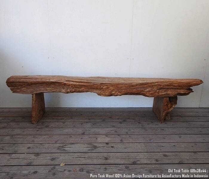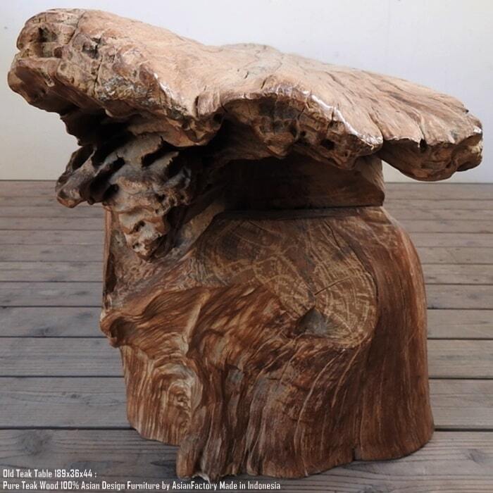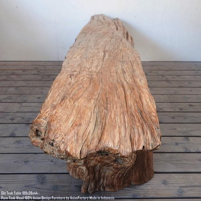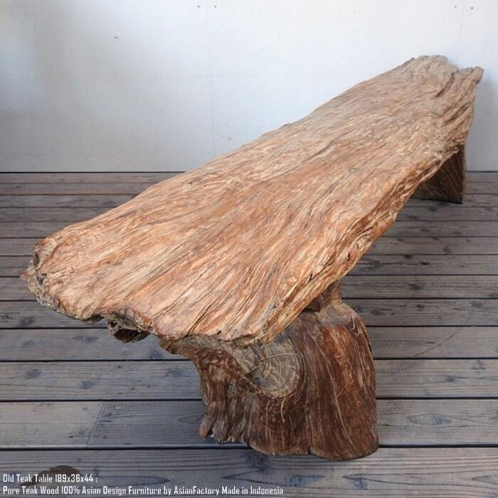 チーク材の中でもオールドチークは古い家屋を解体した木材などを利用した材料で、充分に乾燥し、若い木材より堅牢で独特の風合いがあります。