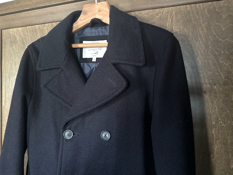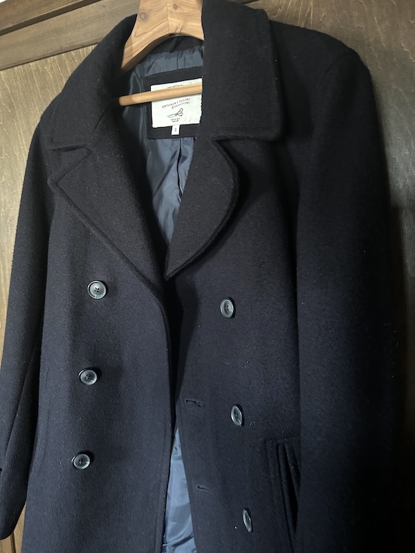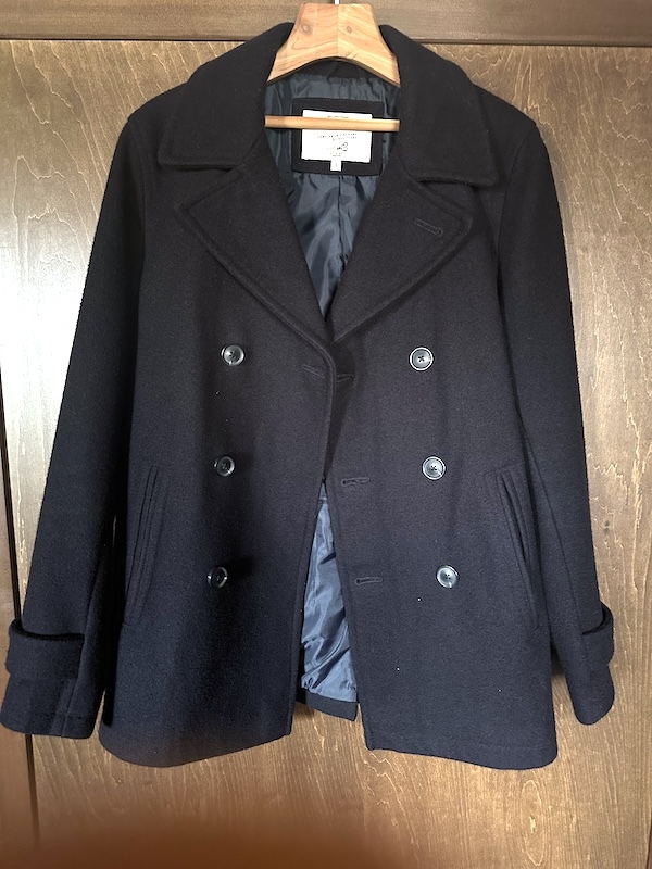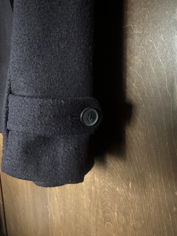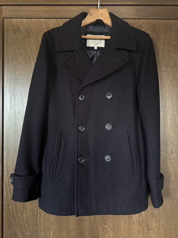 かなりベーシックな形のピーコートなので、時代や年齢問わず、長く着ていただけると思います。