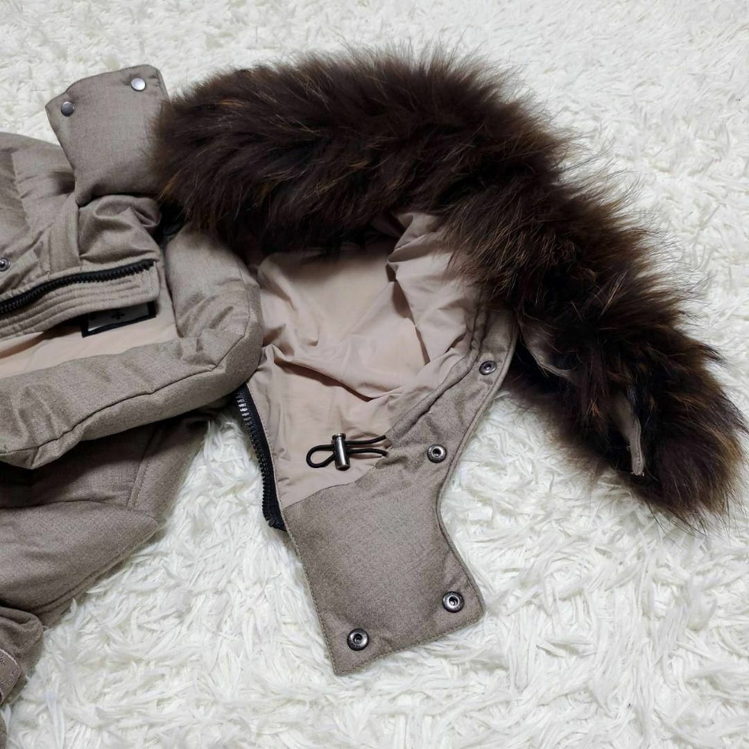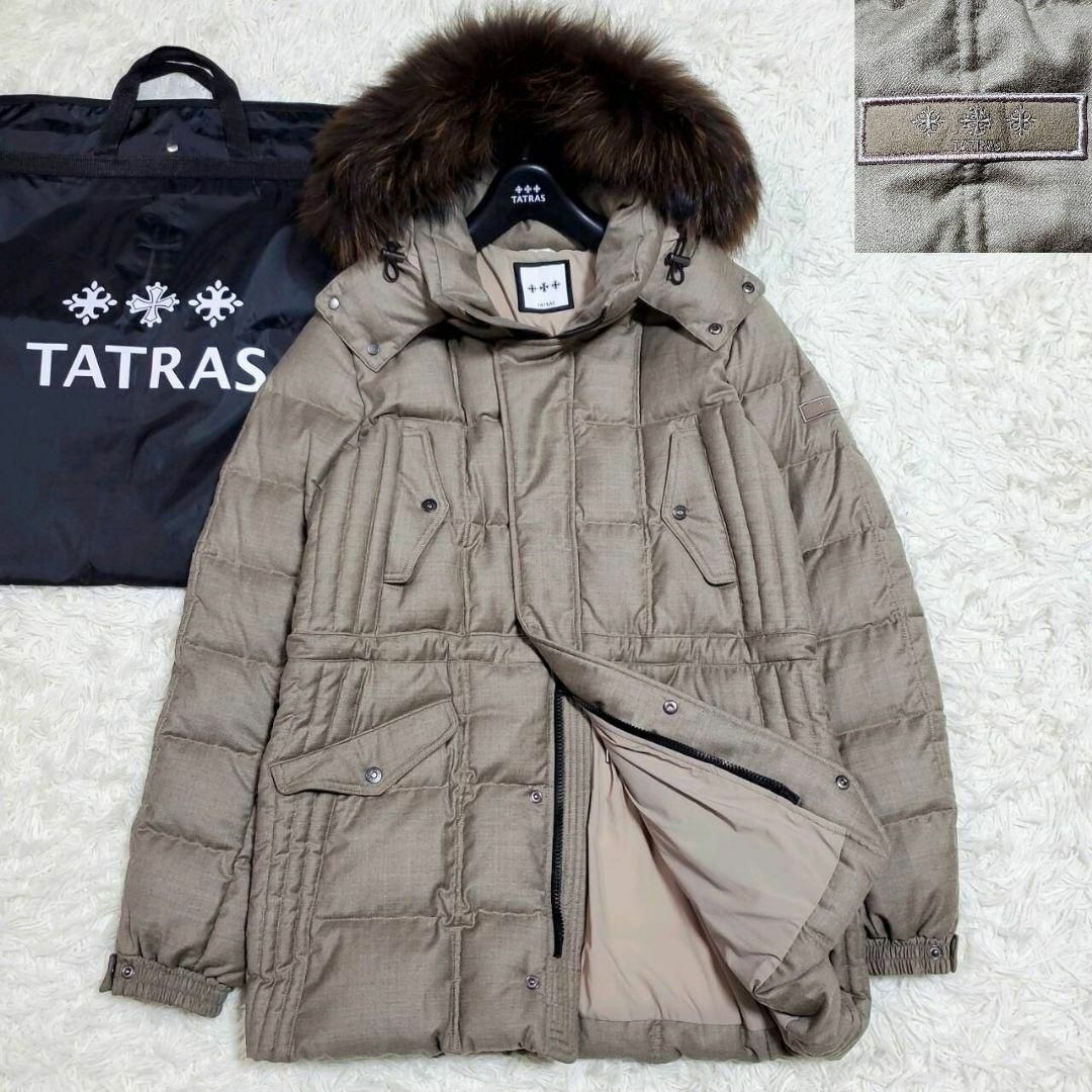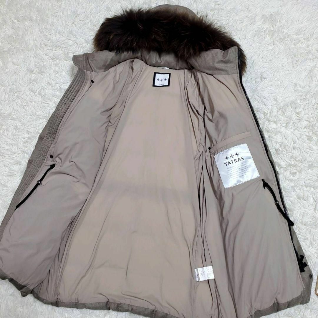 極美品 L タトラス ナポレオーネ シルク ダウンジャケット 茶 ファー フード TATRAS NAPOLEONE 絹 ウール 03 ブラウン キルティング MTA15A4301 ラクーン 毛皮 羊毛