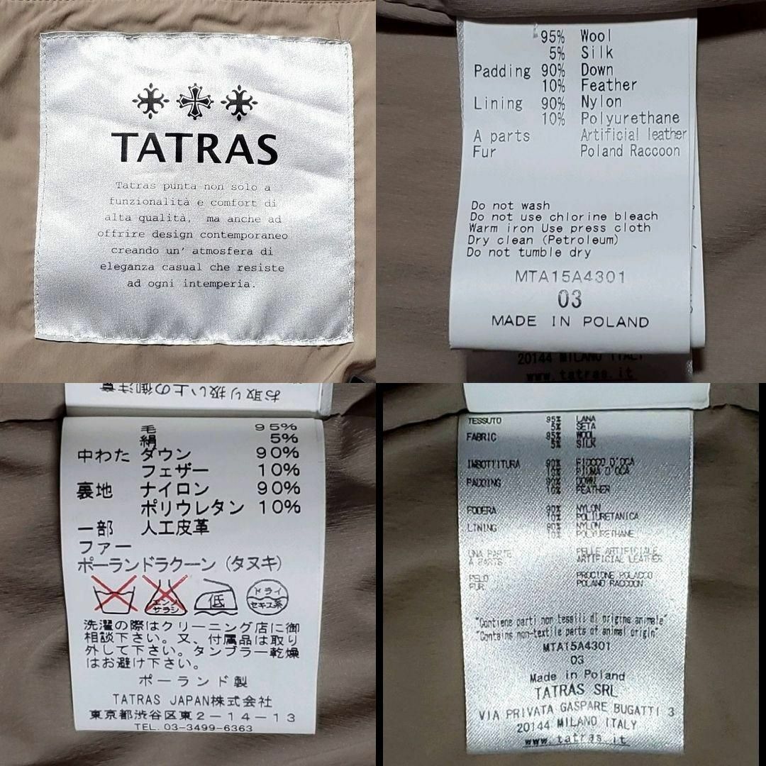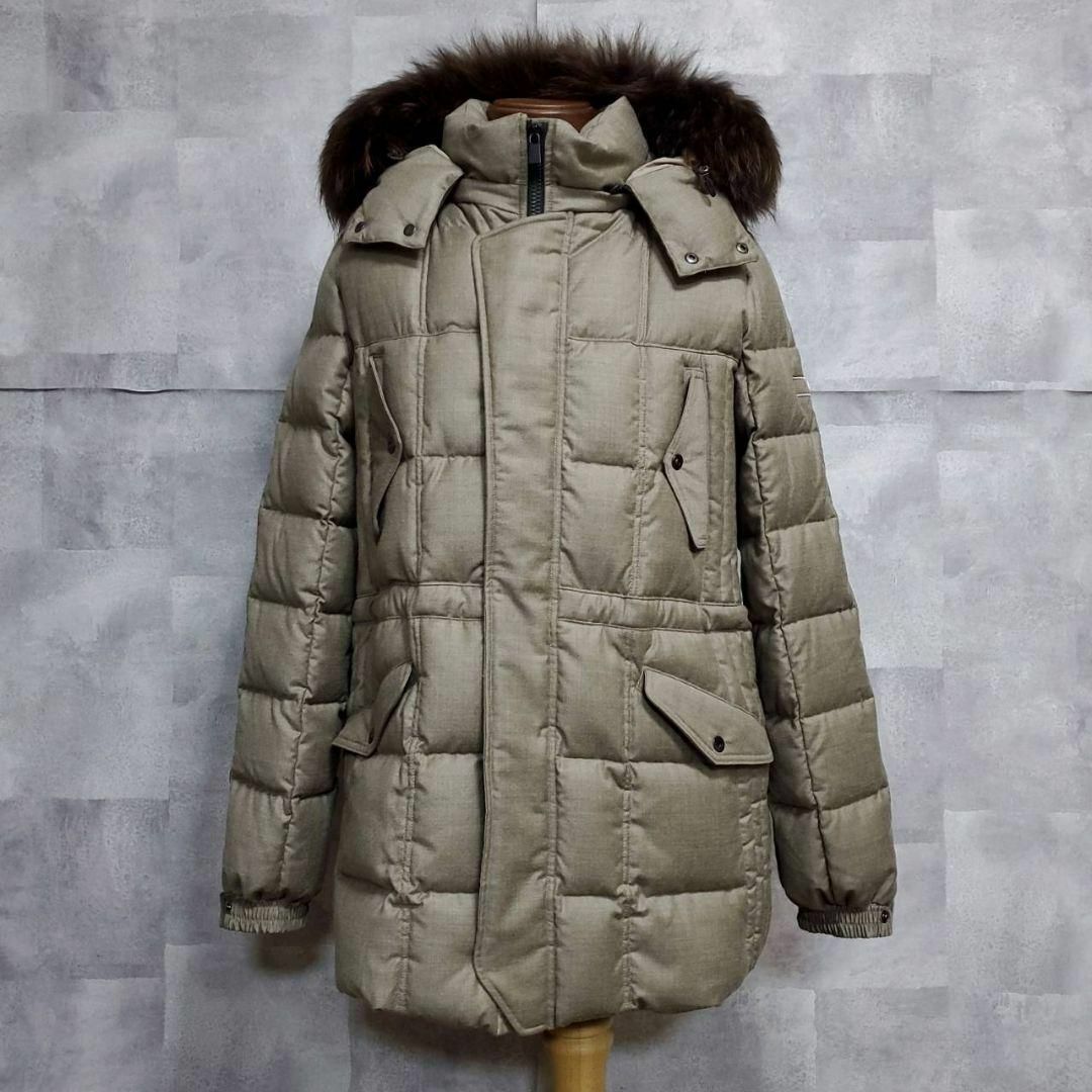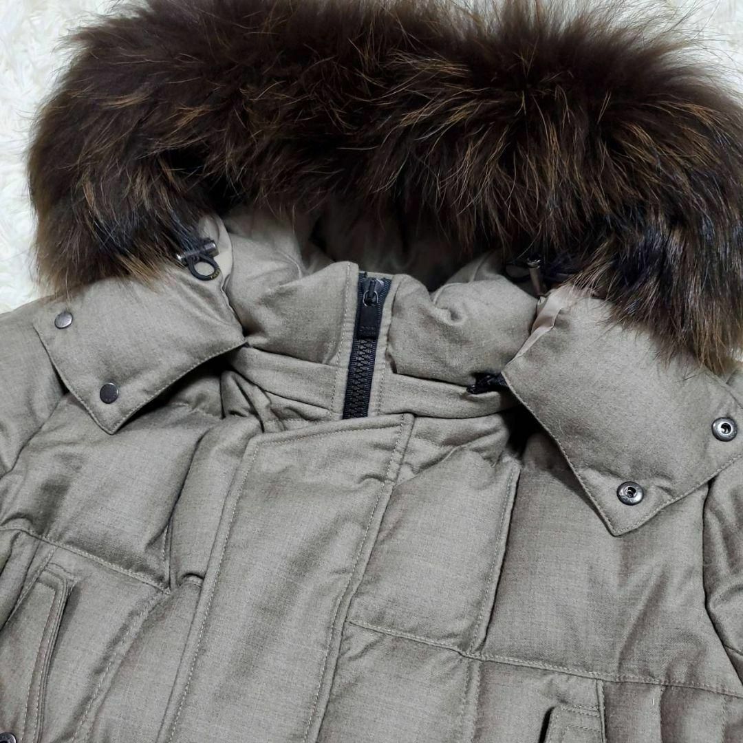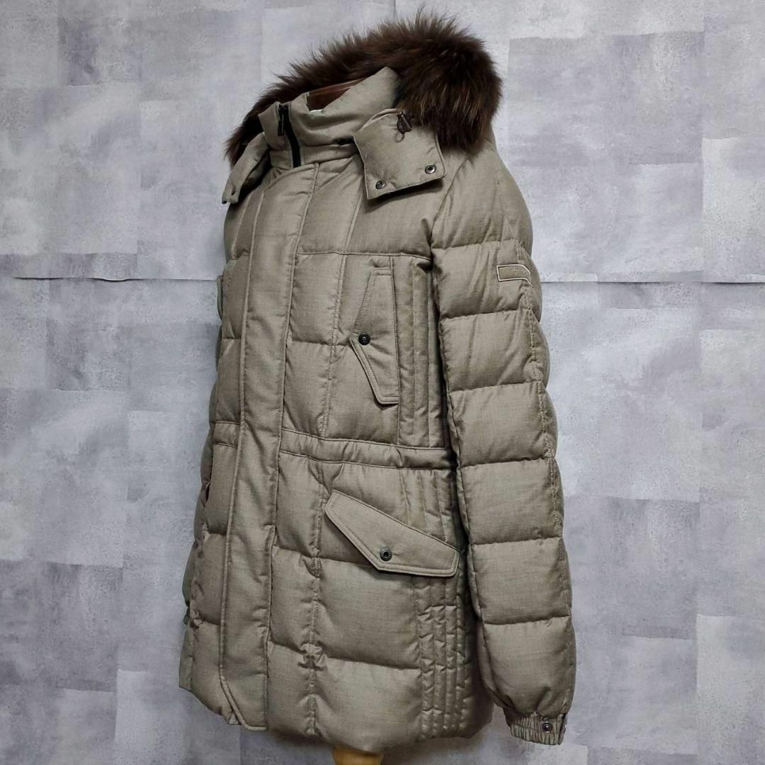 極美品 L タトラス ナポレオーネ シルク ダウンジャケット 茶 ファー フード TATRAS NAPOLEONE 絹 ウール 03 ブラウン キルティング MTA15A4301 ラクーン 毛皮 羊毛