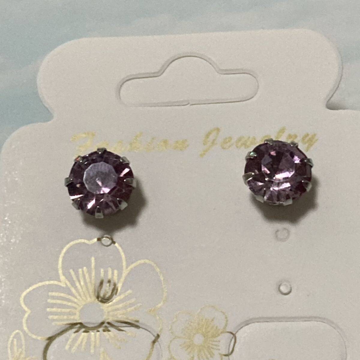 新品送料無料 パープルのラインストーンのスタッドピアス キラキラ 綺麗 プチピアス おでかけ 紫