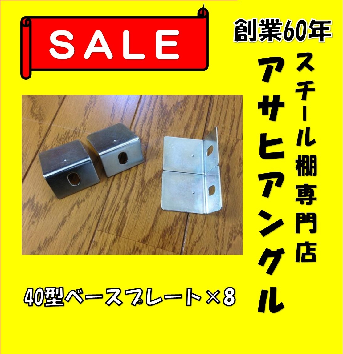 ●スチールラックパーツ 部品 40型ベースプレート 4枚セット ●個数指定可能 バラ売り 単価70円 ●送料:レターパックライト (20ヶまで) 20ヶ以上の場合宅急便にて発送 その他出品中の商品と同梱可能です。 早急に必要な場合も事前にお問い合わせくださいませ。ご希望に添えない場合もございますが、全力で対応させていただきます。 組立説明書のダウンロードや本商品の詳細、まとめ買いや現場施工等 詳しくは当社ホームページに記載しておりますのでどうぞご覧くださいませ。 http://www.asahiangle.net/ | ||||