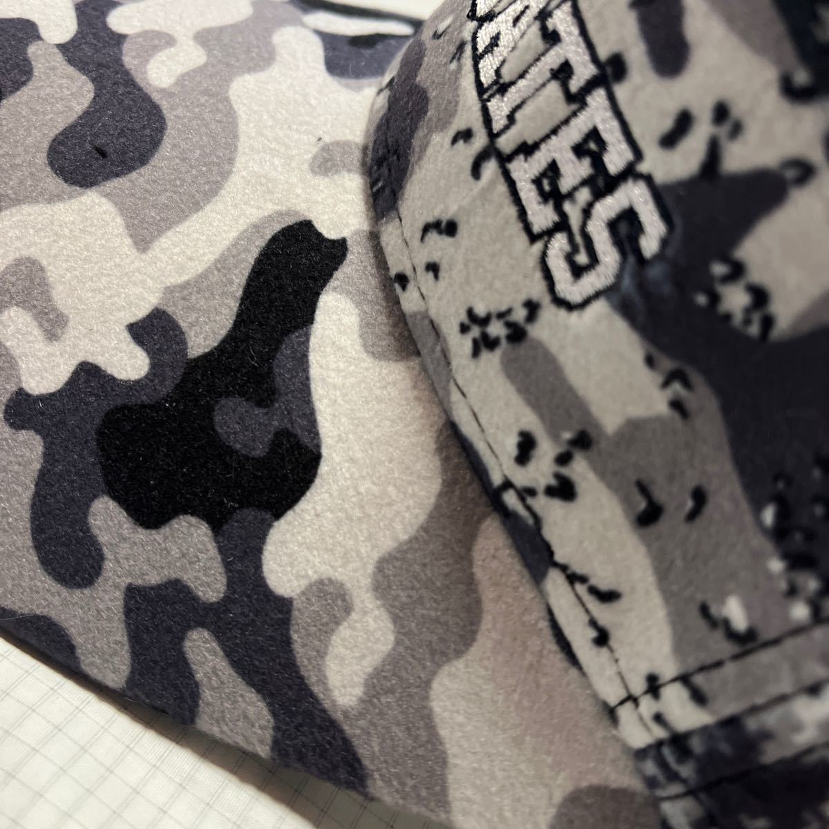 男女兼用フリーサイズ、カラーはグレー系のカモ柄です。