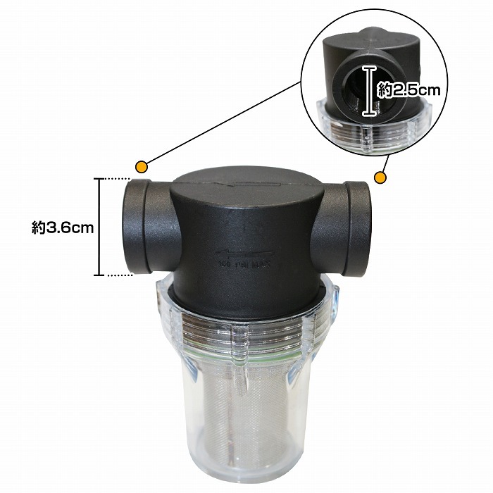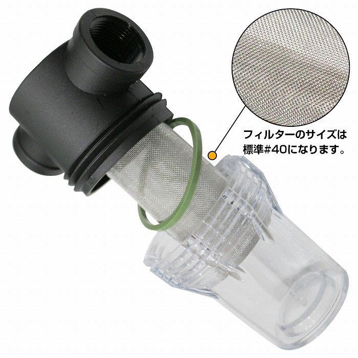 point 1 : フィルターは#40の標準メッシュで砂やゴミをしっかりとキャッチします。