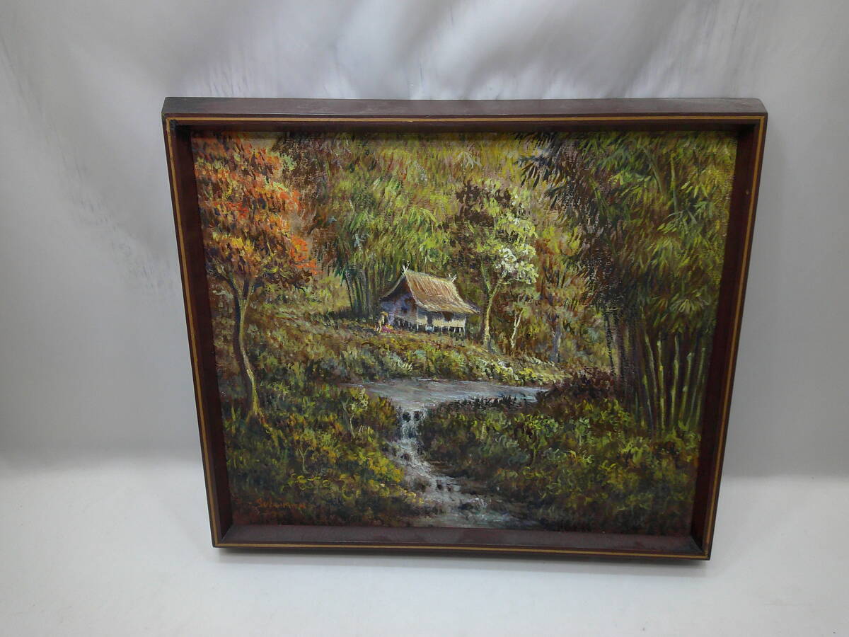| ■【蔵出し】 風景画 油絵 田舎 山村 小川 小屋 SULAIMAN? 詳細不明 ■ |