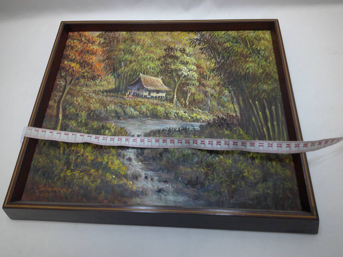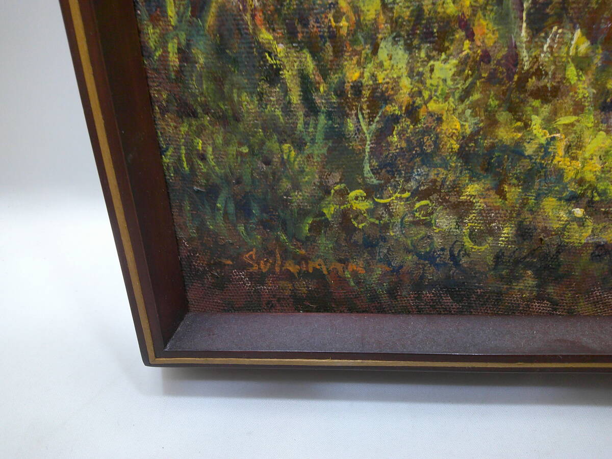 | 【商品説明】 【蔵出し】 風景画 油絵 田舎 山村 小川 小屋 SULAIMAN? 詳細不明
