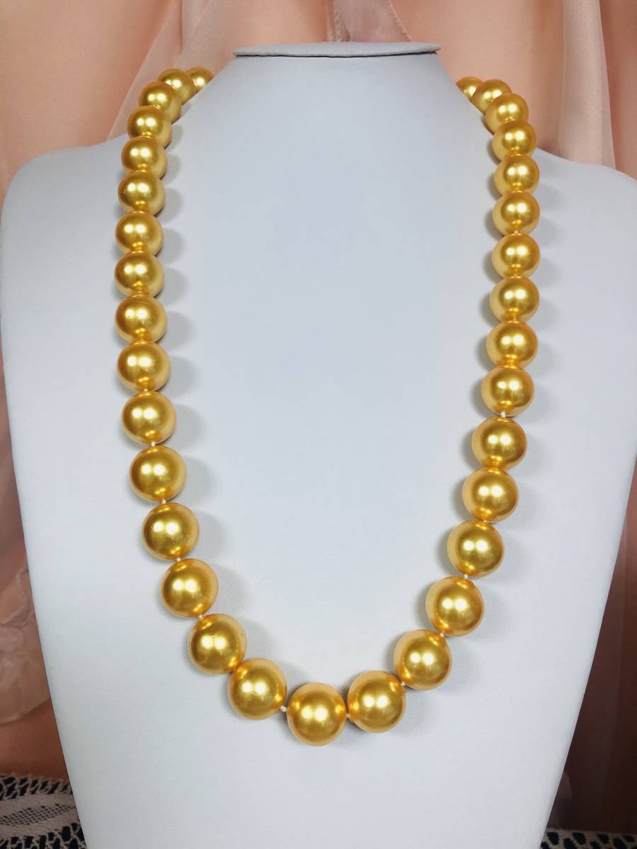 ●商品名:巨大粒16mm人工真珠/貝パールロングネックレス(濃いゴールド)送料無料