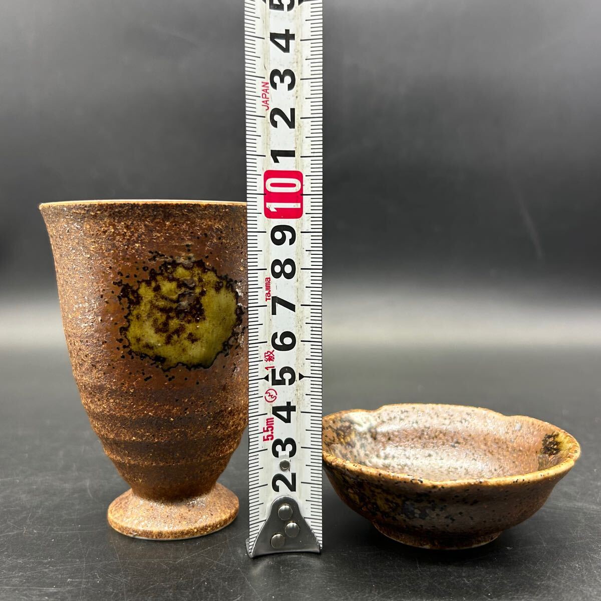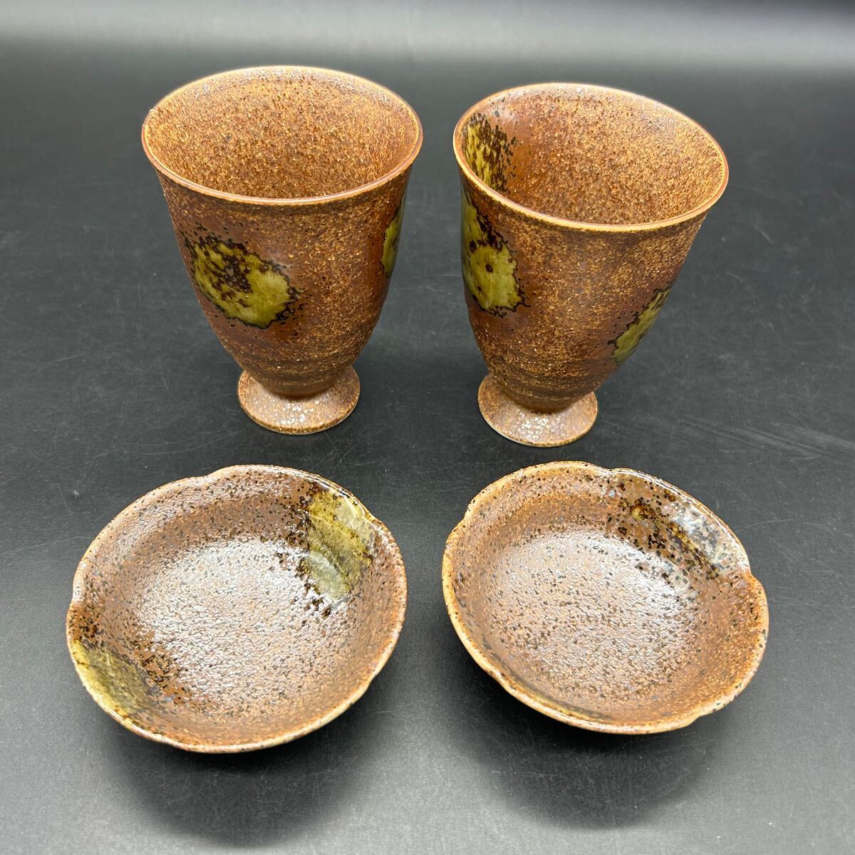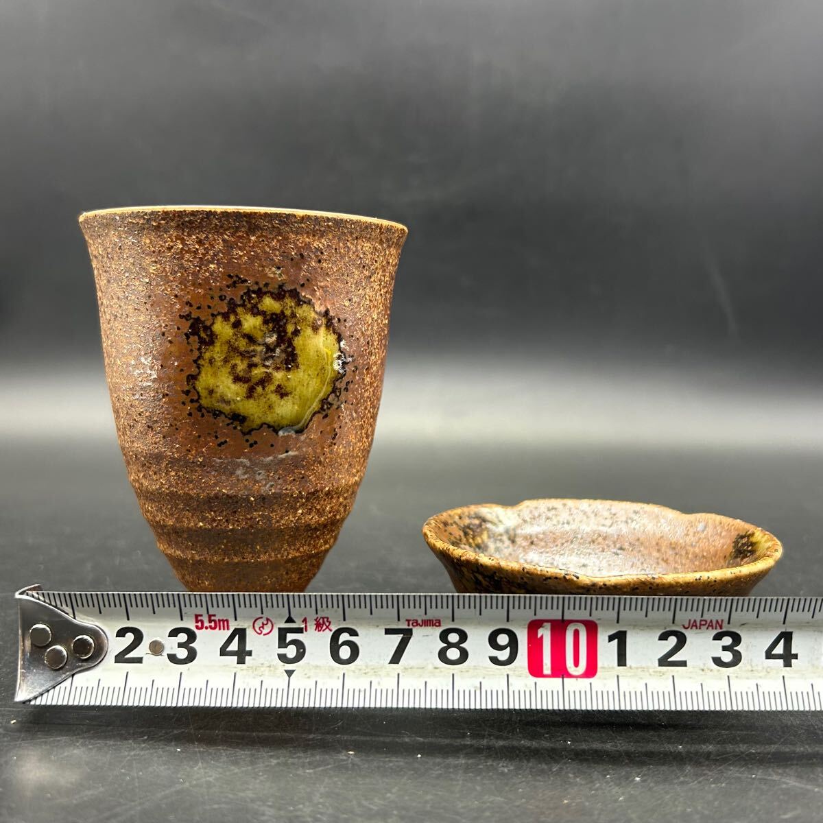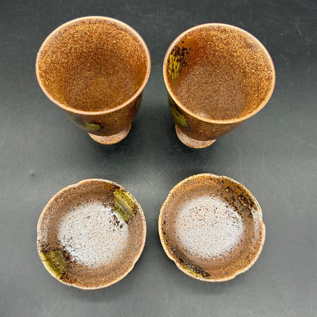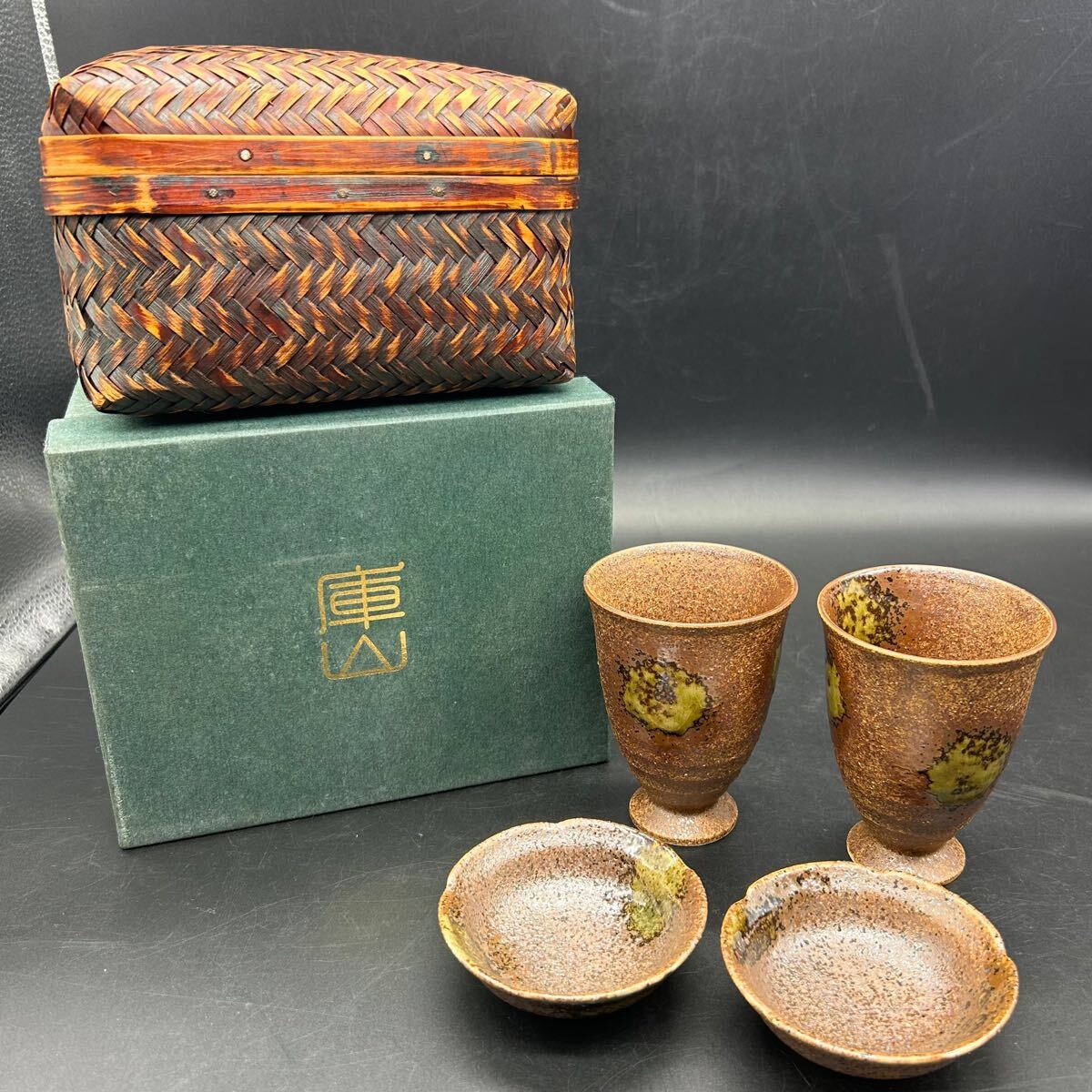 益子焼 庫山窯 古窯の旅 篭付ペアフリーカップ 湯呑み 豆皿 未使用品 ツ20