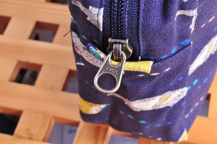 外側にもポケットを付けていますので、デスクの上に置いて、ペンたてやアイフォン入れにしていただいても。