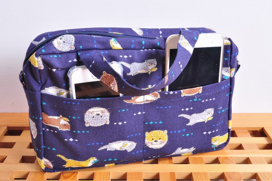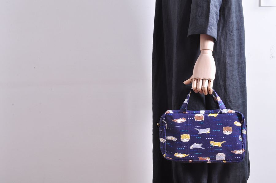 手作り バッグinバッグ コツメカワウソ君 青 1742