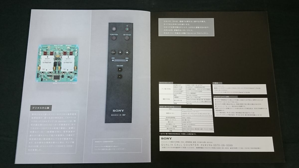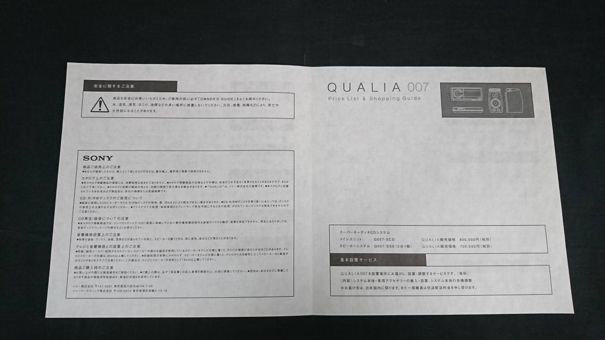 『SONY(ソニー)スーパーオーディオ CDシステム QUALIA 007(クオリア 007) メインユニット Q007-SCD/スピーカーシステム Q007-SSS カタログ+価格表』2003年頃 ソニー株式会 | |