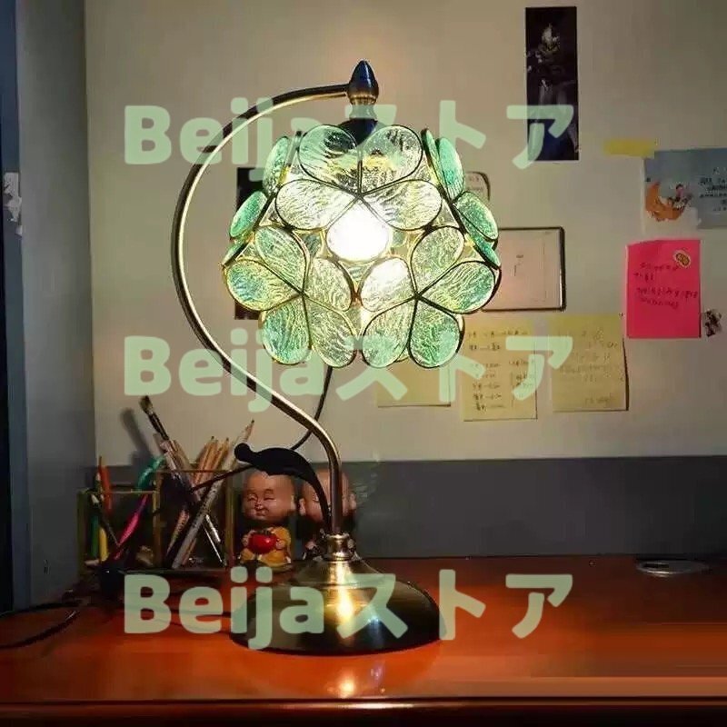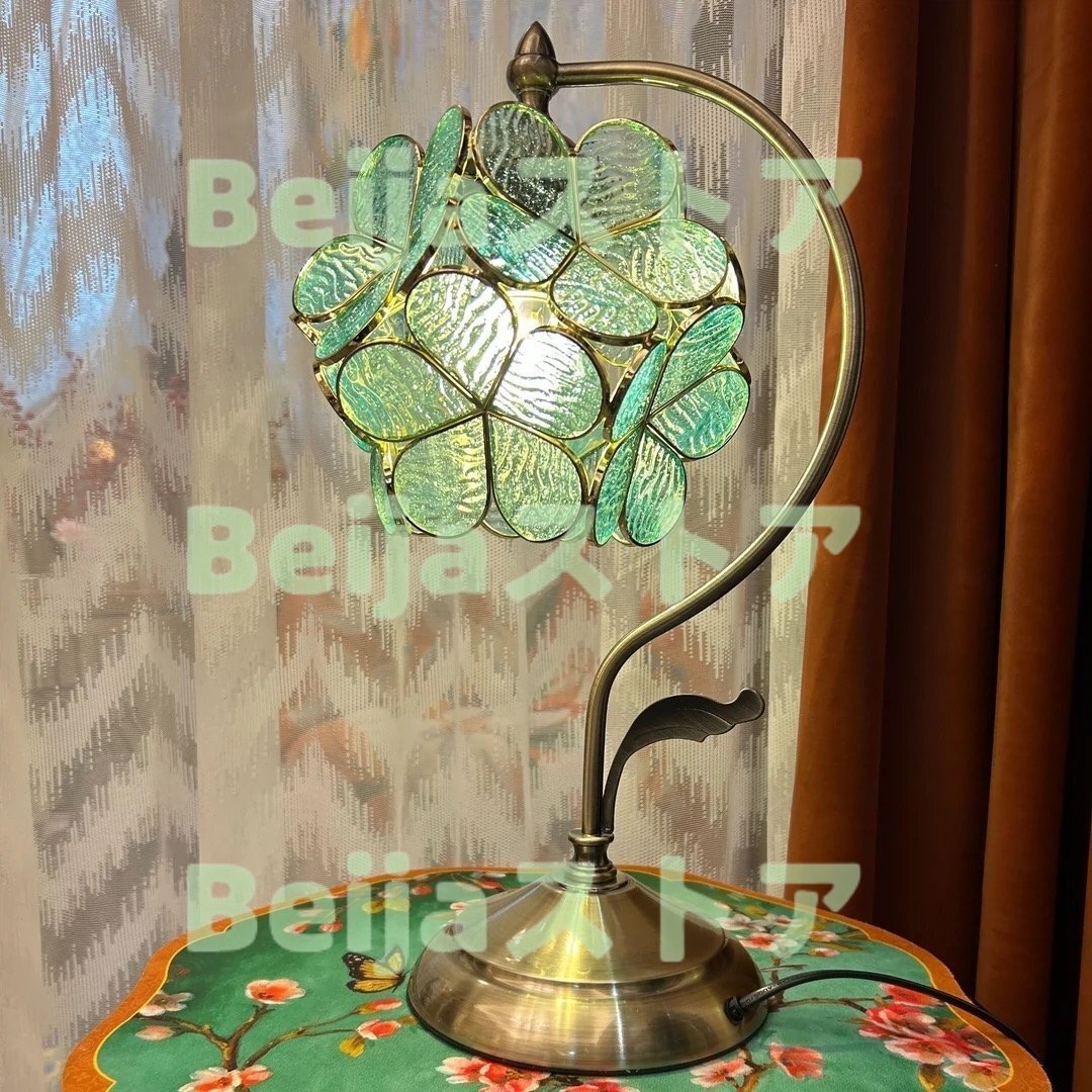 美品 卓上スタンドライト ステンドグラス ひすい色 花柄 レトロな雰囲気 ティファニー 装飾品 照明