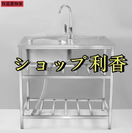 品質保証 キッチン用品 ステンレス製流し台 台所 1槽シンク 食器洗いシンク 野菜シンク 肥厚大容量 便利 蛇口水栓/スタンド付き