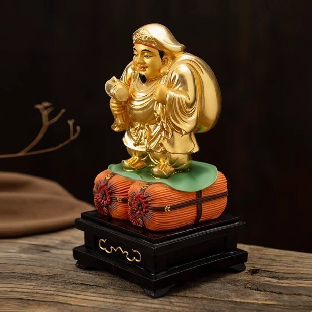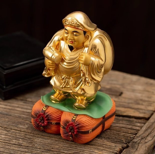 「密教法具 寺院仏具」 財神 福神 大黒天立像 金箔 切金 仏教芸術品 置物