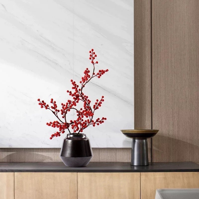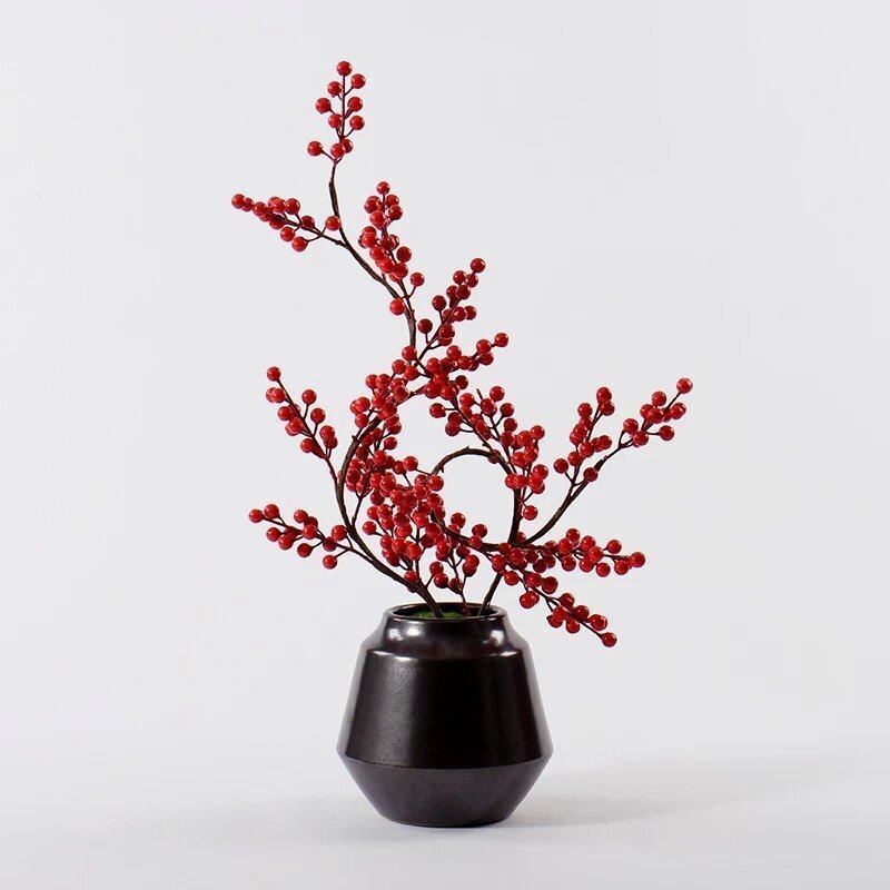 偽の花 模擬ベリー 陶器 人工樹木 植物装飾 植木鉢 人工観葉植物 盆栽 禅風 居間/玄関飾り お祝い インテリア 枯れない花 置物