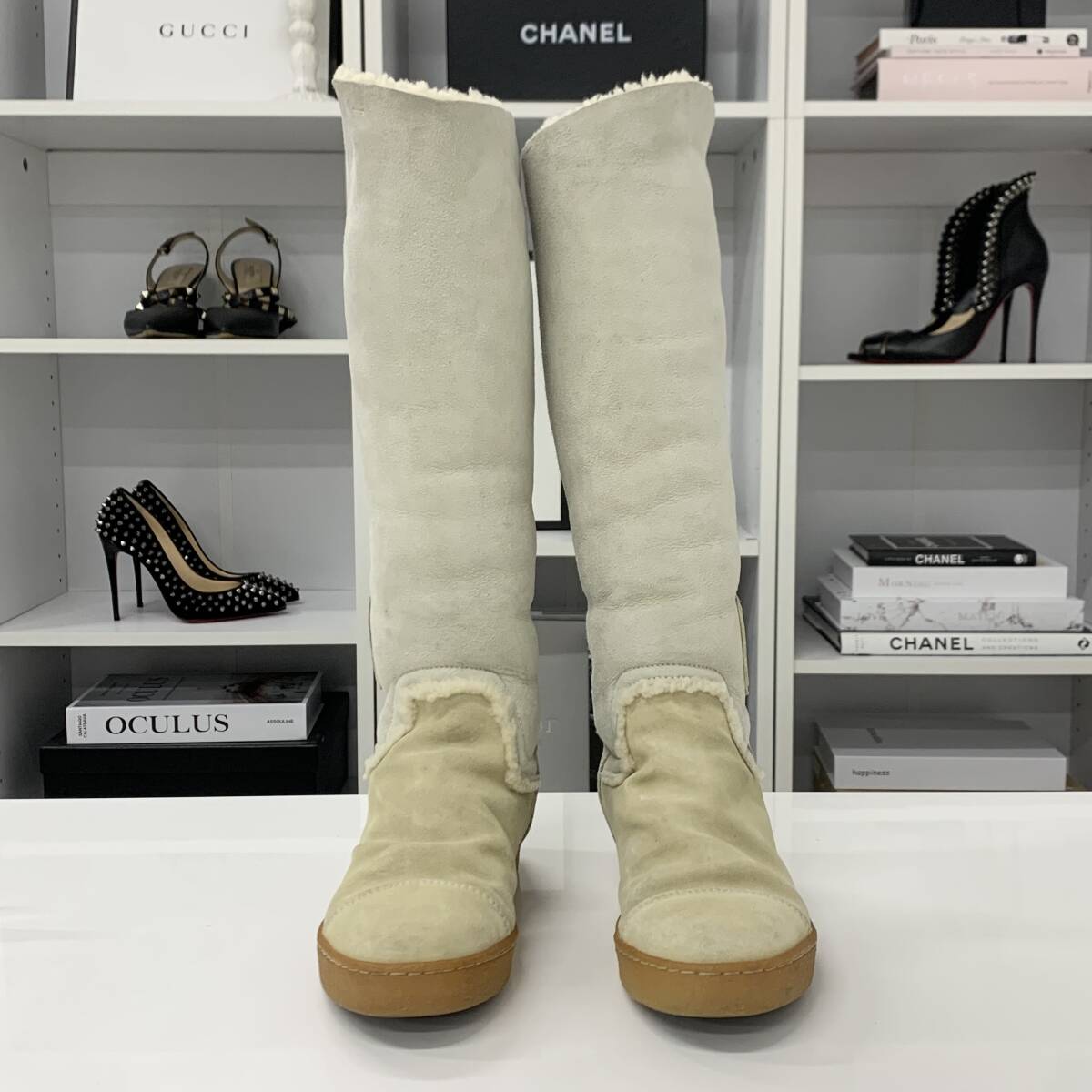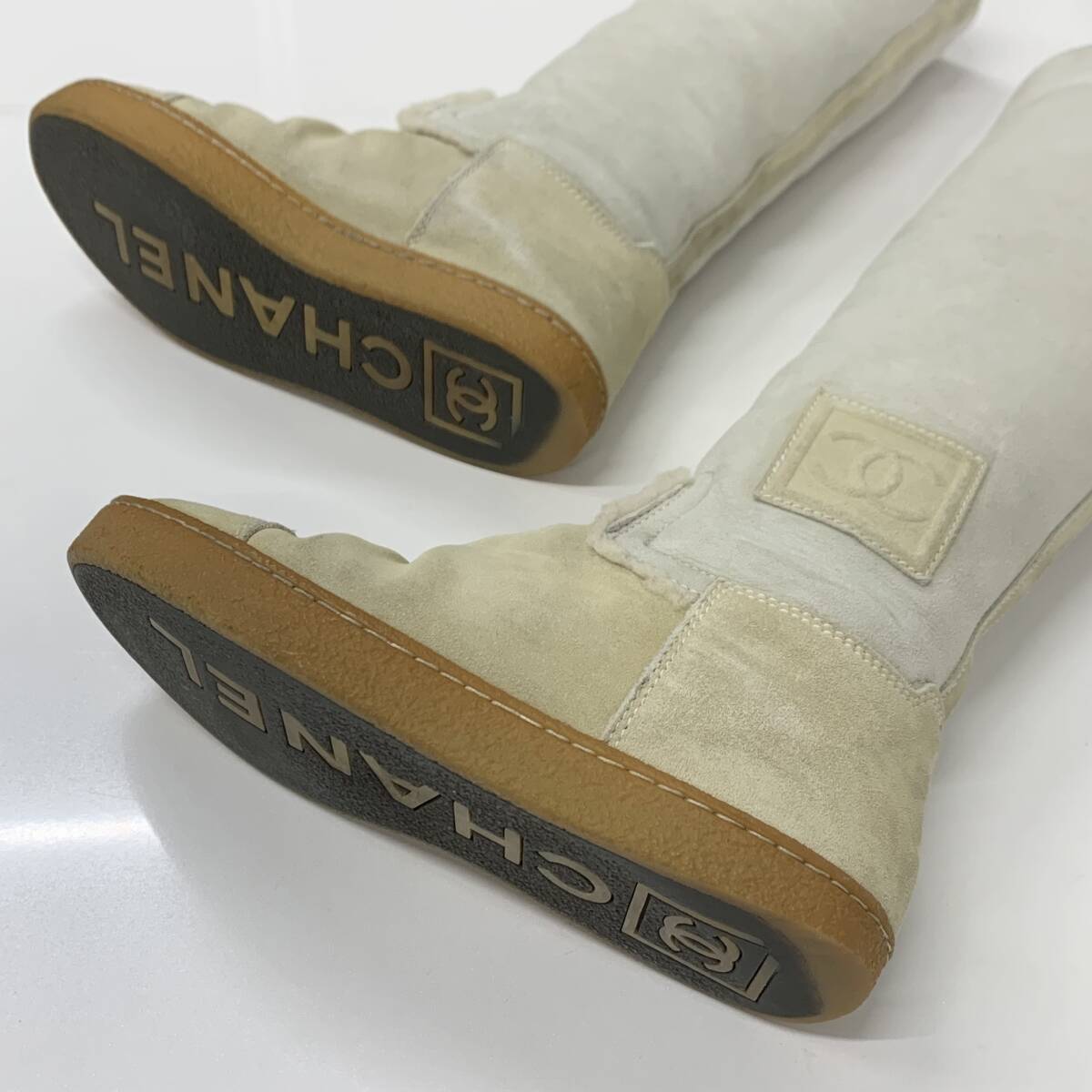 8007 シャネル スエード ココマーク ムートンブーツ ベージュ系