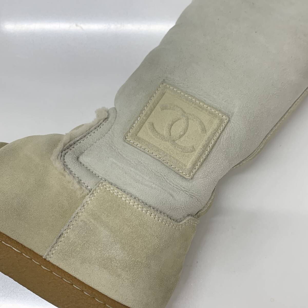 シャネル スエード ココマーク ムートンブーツ ベージュ系