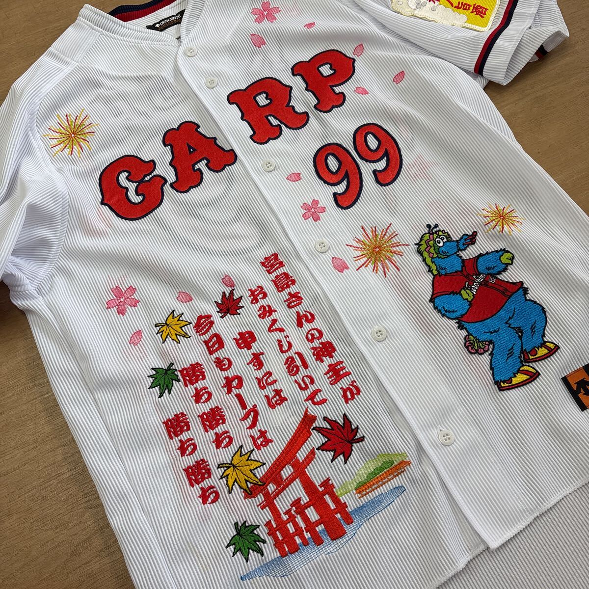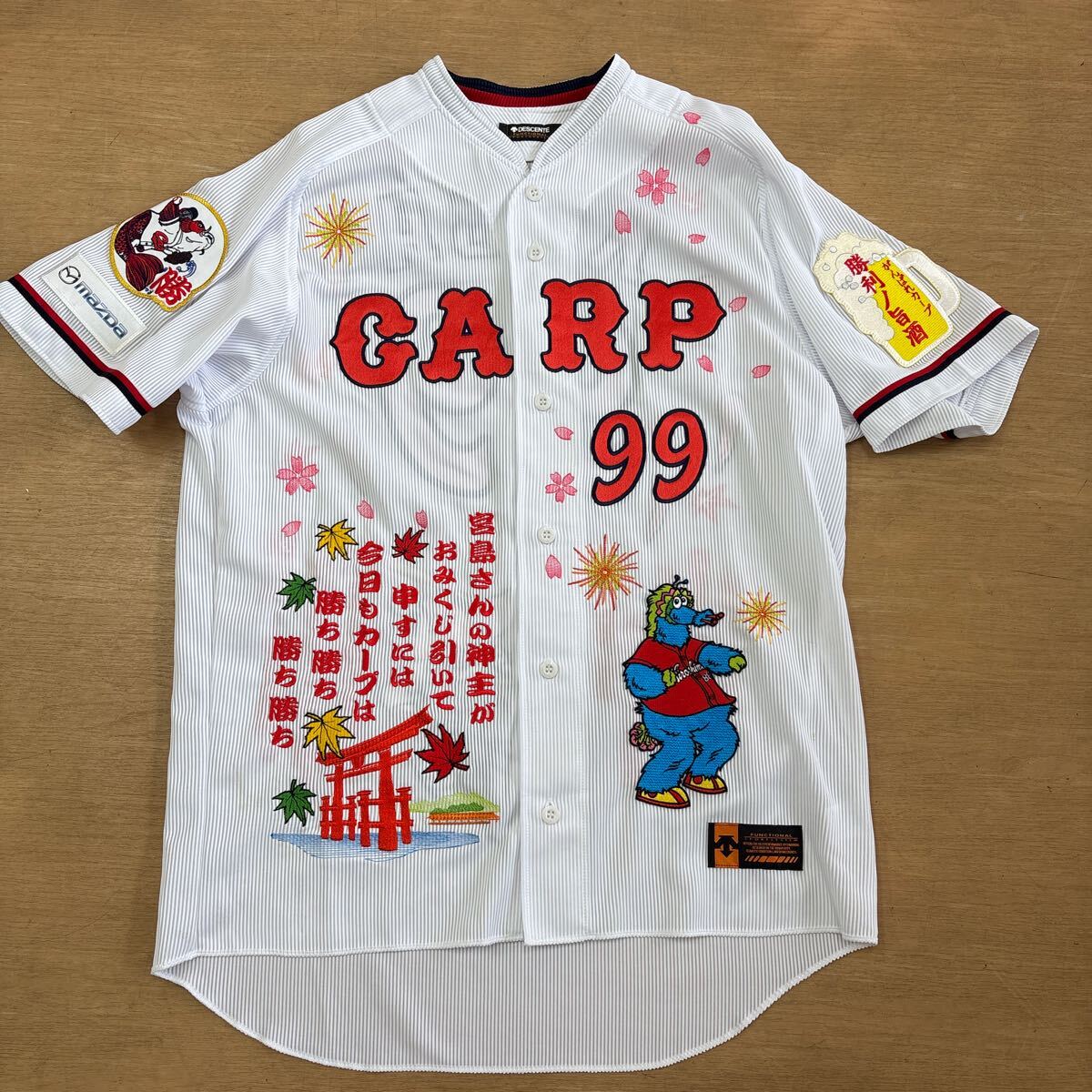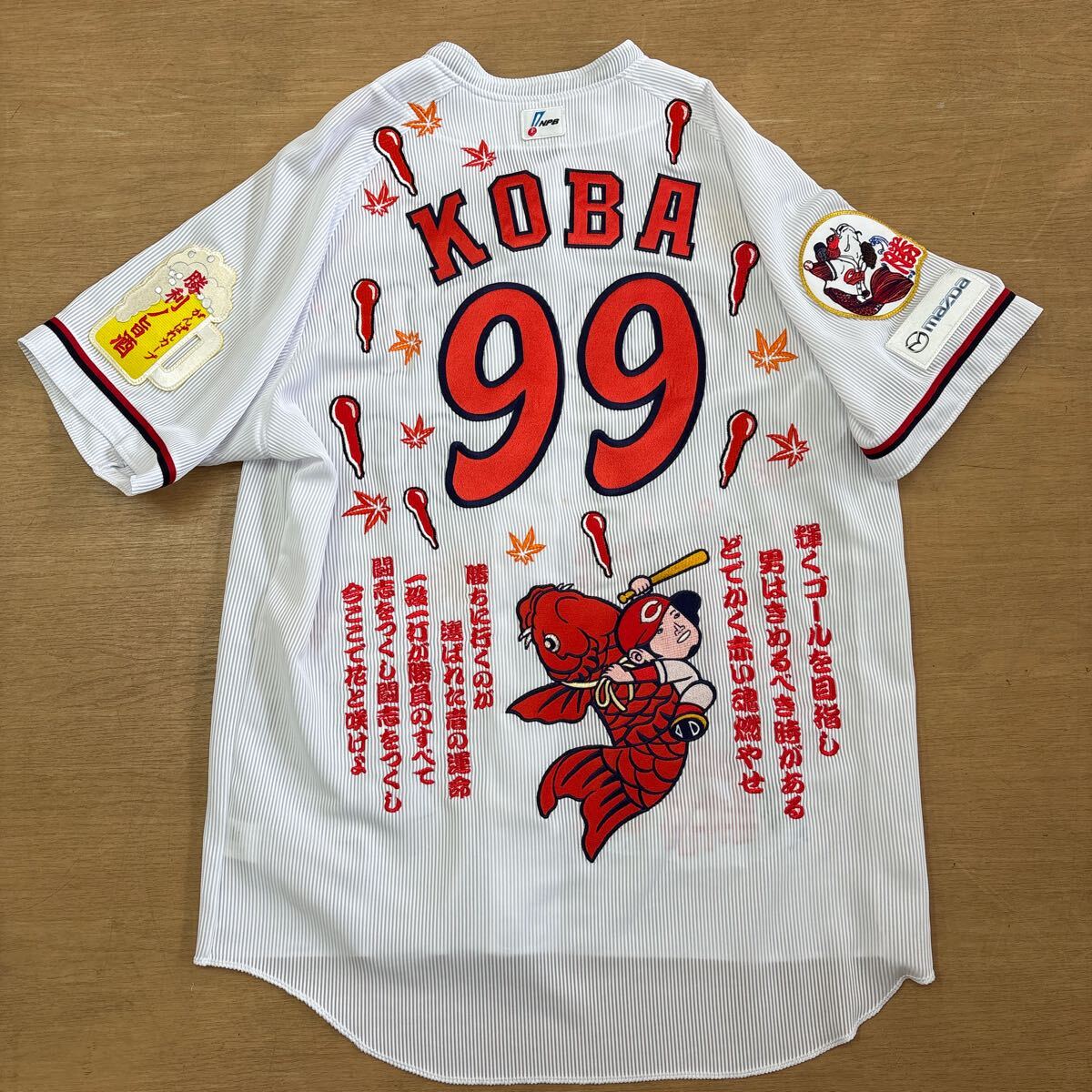 レア 希少 広島カープ 古葉 竹識 監督 オリジナル ユニフォーム 刺繍 宮島 スラィリー 鯉 応援歌 NPB ワッペン デサント ホーム サイズXO