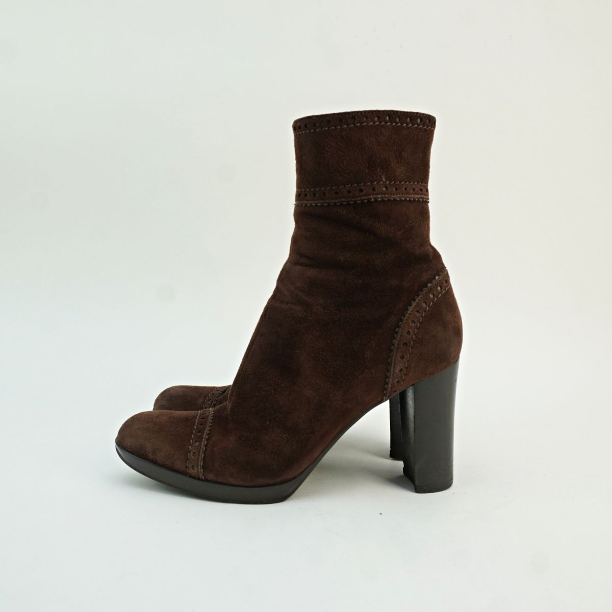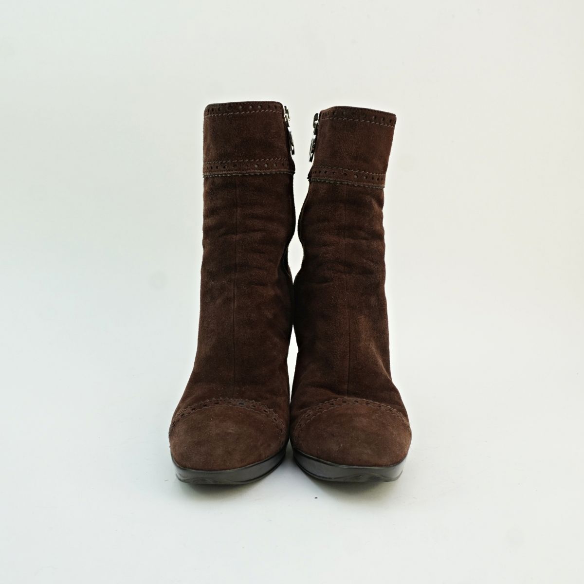 □サイズ:36 1/2 23.5 ※海外表記の場合 上記に掲載している靴のサイズはあくまで目安です。 靴メーカーによって、また同じメーカーの靴であってもデザインやシリーズなどによりサイズは微妙に違ってきます。あくまで参考程度の目安としてご利用下さい。 ヒールの高さ:9cm □素材:スエード □カラー:ブラウン □状態 傷、汚れのない綺麗な状態です。 ■お取り置きについて お取り置きの対応は行なっておりません。 ご了承くださいませ。 ■落札後のご連絡について ご落札後のご質問・値下げ交渉にはお答えできかねます。 ご質問がありましたら入札前にお願いいたします。 商品落札後は期限内にご入金をお願い致します。 ご入金頂けない場合、 通達連絡をさせて頂きます。それでもご連絡が無い場合は「落札者の都合によるキャンセル」にてお取引を中止とさせて頂きますのでご注意下さい。 ※自動的に「非常に悪い」の評価が付きます。 ■発送について 追跡番号が必要な場合は発送前にご連絡ください。 商品発送後に追跡番号を要求された場合、対応出来かねますのでご了承ください。 また、日時指定の対応は出来かねます。その場合も追跡番号の有無をご連絡くださいますようお願いいたします。 ■商品到着後のお問い合わせについて 記載ミス・抜けがあった場合のみ返金を考慮いたします。必ず 評価前に取引ナビよりご連絡ください。 ※お電話での問い合わせ対応はしておりませんのでご了承ください。 ■評価について 評価が不要の場合はこちらへの評価も入れないようお願い致します。 尚、お問い合わせ前や対応前でのいきなりの悪評価はご遠慮下さい。 不備がありましたら必ず事前にお問い合わせをお願い致します。 いきなりの悪評価の場合、同等評価とさせて頂く場合がございます。 ■商品について 新品商品以外はあくまでUSED品となっております。 着用に問題が無いと判断した商品を出品しておりますが、細かな見落としもございますので、神経質な方、商品のクオリティーをお求めの方は入札をお控え下さい。 検品の際にできる限りの商品ケアをさせて頂いておりますが、素材や繊維のニオイが残る場合がございます。 天気の良い日に風通しの良い場所で2日程度天日干しをお試し下さい。 商品到着後のサイズ変更やカラー変更・他商品への変更等、落札者様の都合での商品交換、返品は一切お受けしておりません。 画像参照を確認をしていただき十分ご検討の上にてご入札下さい。(ただし初期不良は除く) ■画像と実物品のイメージ・色について 掲載している画像は撮影用の商品となりますので お届けする商品によっては柄の配置等が微妙に違う場合がございます。 1枚布・生地を裁断して大量生産する場合、生地をカットした部分が 1着・1着それぞれ異なる為、柄の位置ズレが発生致しますので 掲載画像と実物品のイメージが違う場合がございます。 あらかじめご理解とご了承下さいます様、お願い致します。 当店では室内で撮影をしていますが、夜間や室内の暗い場所・蛍光灯の光で商品を見ると 色やイメージが違って見える場合がございます。 また、スマホやPCモニターの解像度・照度設定等の違いや、ブルーライト軽減の効果により出品画像の色と実物品の色合いが違って見える場合がございます。 実物品を撮影した画像を掲載しておりますので「画像と実物品のイメージが違う」「●●色に見える」等のお問い合わせはお受けしておりませんのでご了承下さい。 ■入札について 新規入札の方や評価の悪い方はトラブル防止の為、 入札をお断りする場合がございます。あらかじめご了承下さい。 ※新規の方・評価の悪い方からの不正な迷惑行為が多いため。