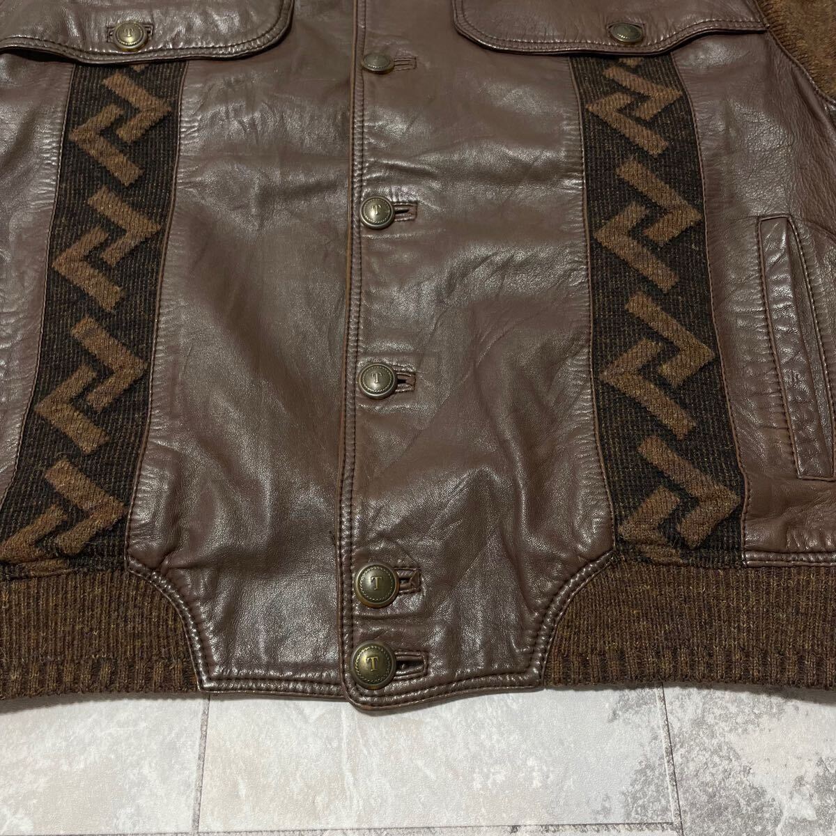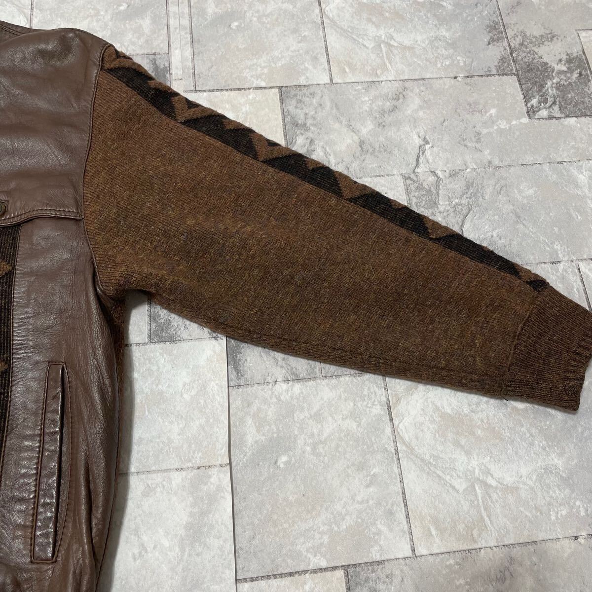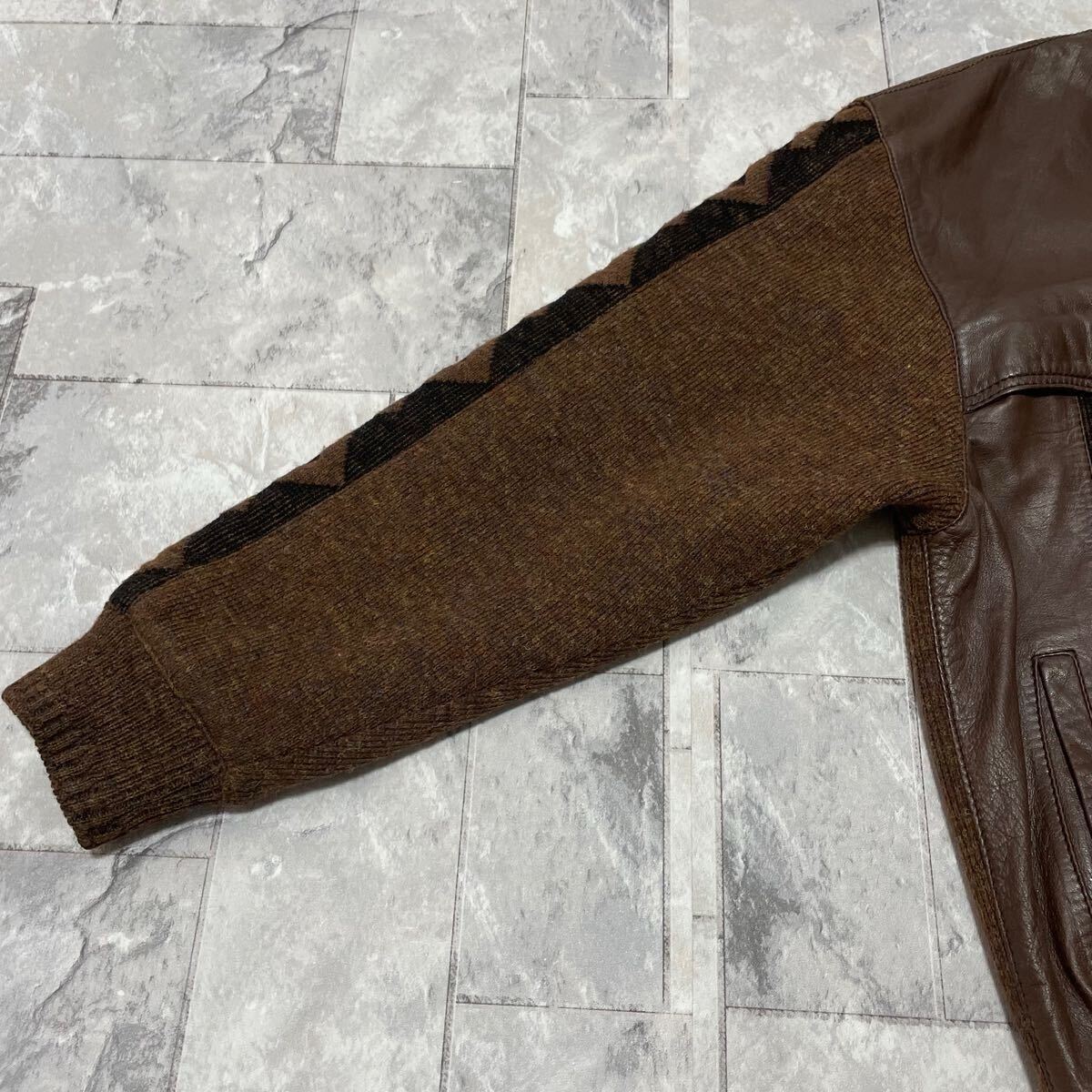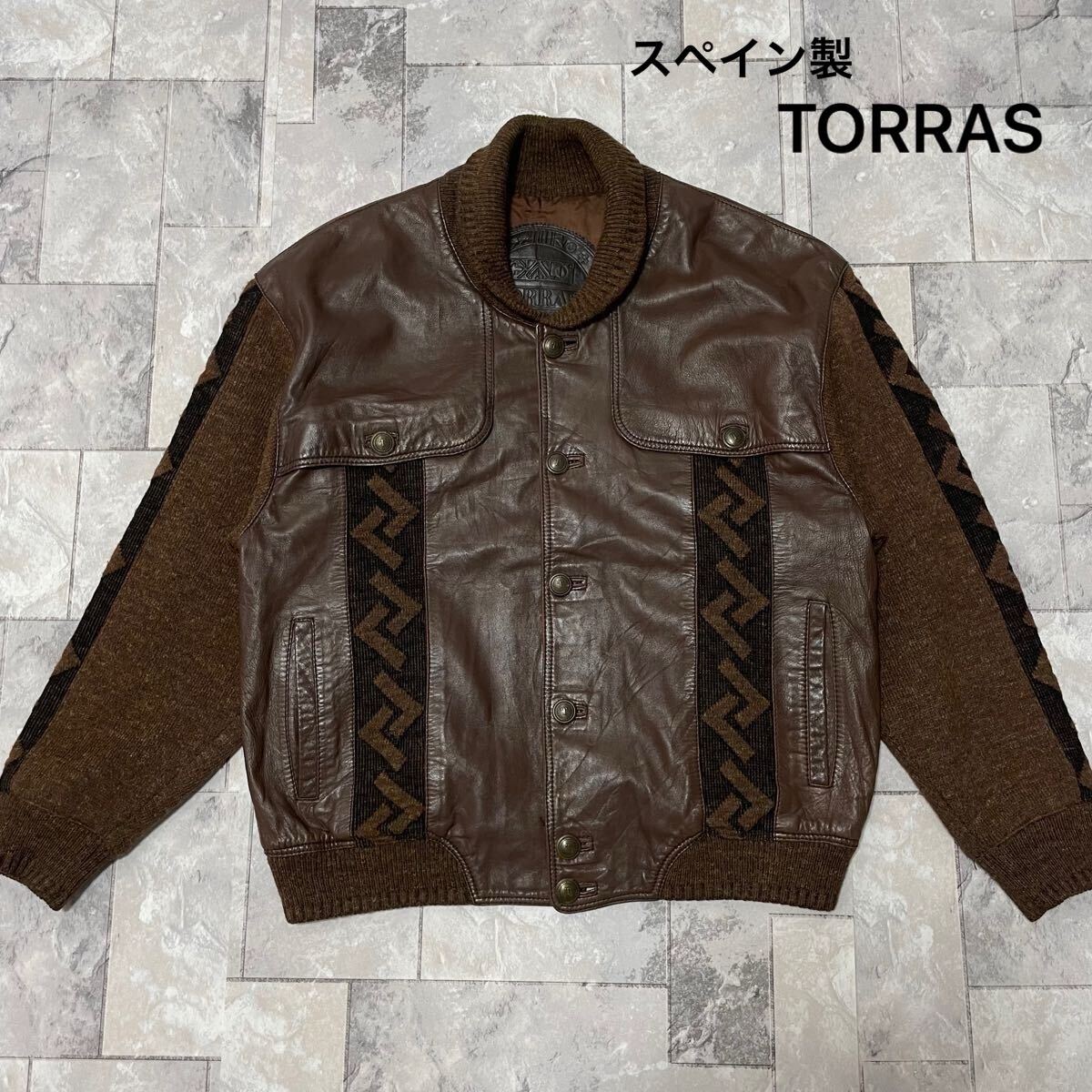 スペイン製 TORRAS トラス レザージャケット ニット 異素材切り替え ヴィンテージ オールド 高級 ブラウン サイズ52 L相当 玉SS2922