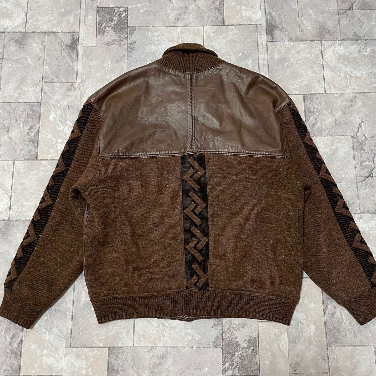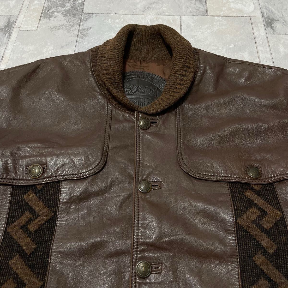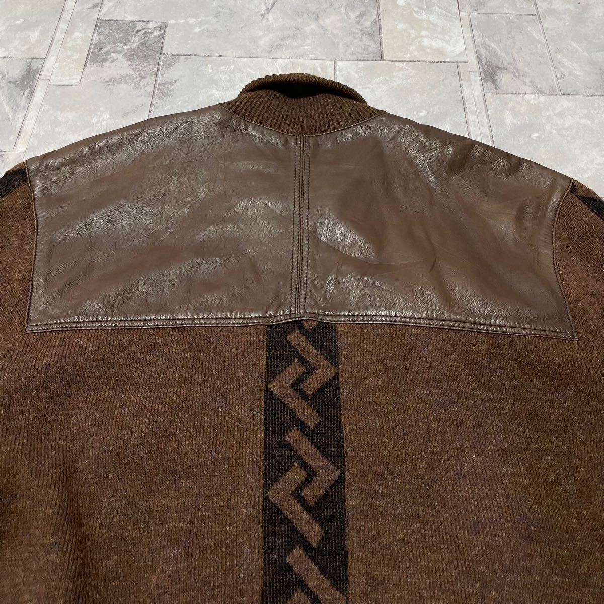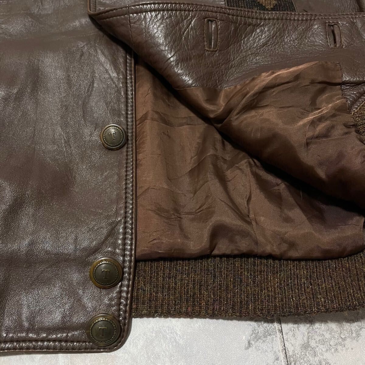 スペイン製 TORRAS トラス レザージャケット ニット 異素材切り替え ヴィンテージ オールド 高級 ブラウン サイズ52 L相当 玉SS2922