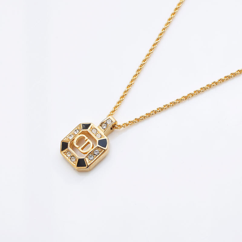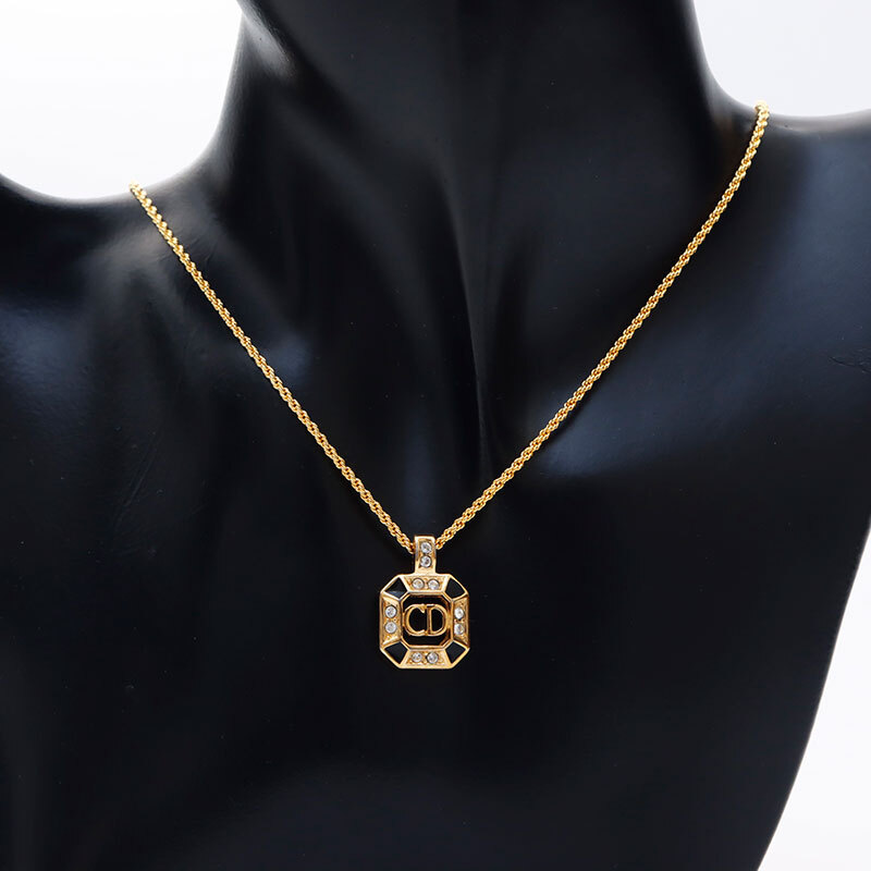 クリスチャンディオール Christian Dior ネックレス CDロゴ ラインストーン ゴールド