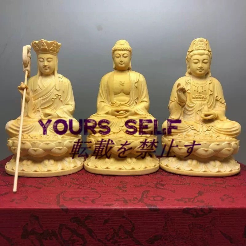 仏教美術 三宝仏 釈迦如来 薬師如来 阿弥陀如来 木彫仏像 仏師で仕上げ品 高さ11.5cm
