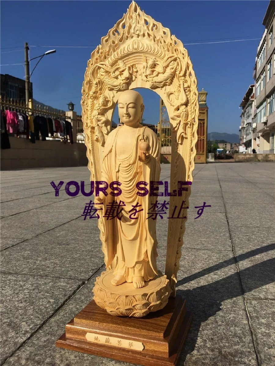 高級仏教美術 ★はヒノキ木彫りの蔵王菩薩透かし彫りバックライト蓮台仏像を使用していない中国式客間仏堂寺院置物身長47cm